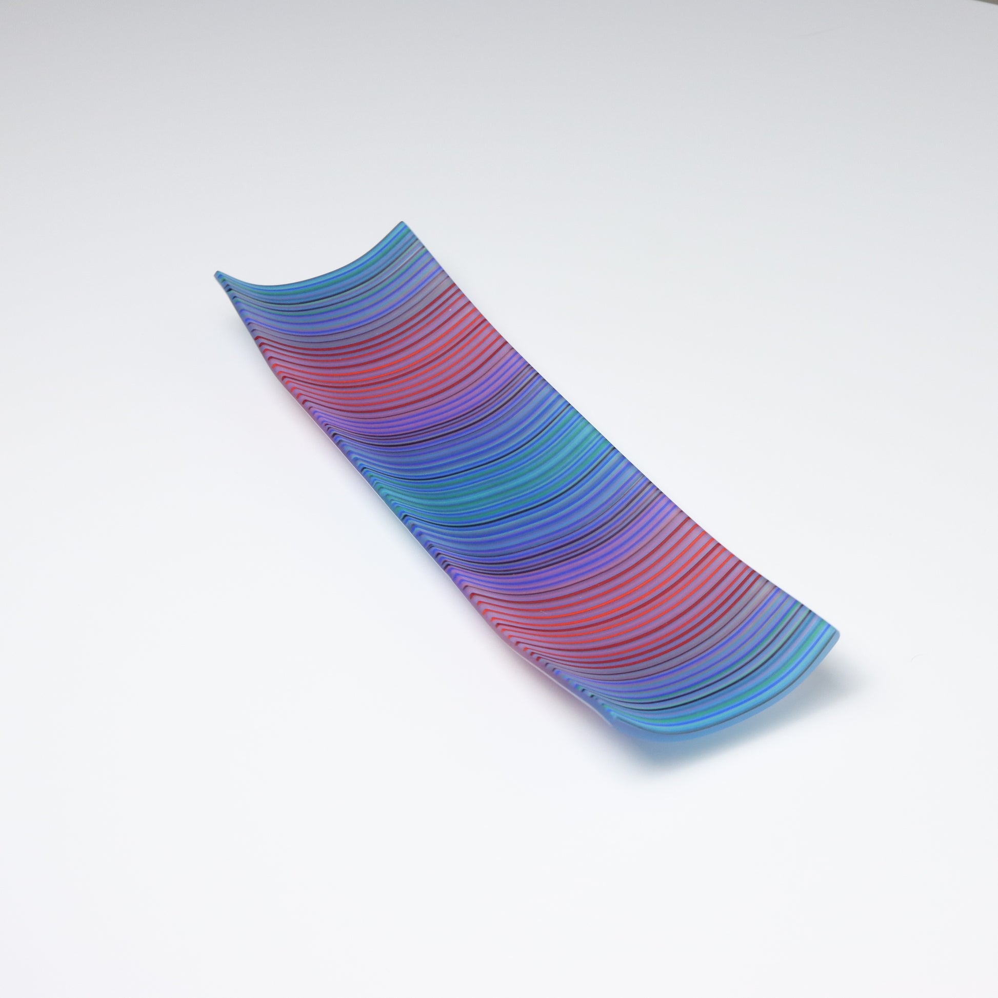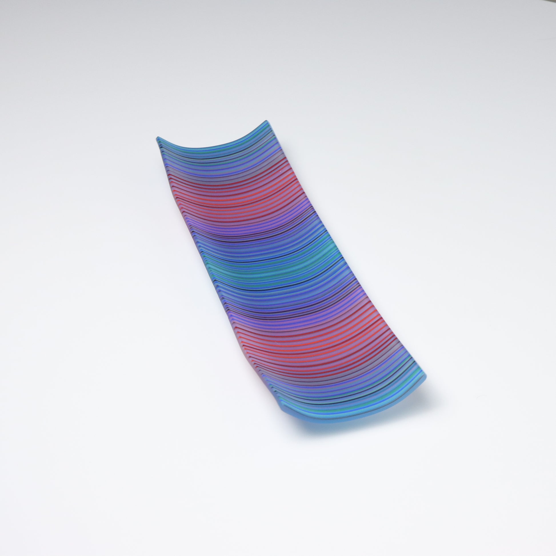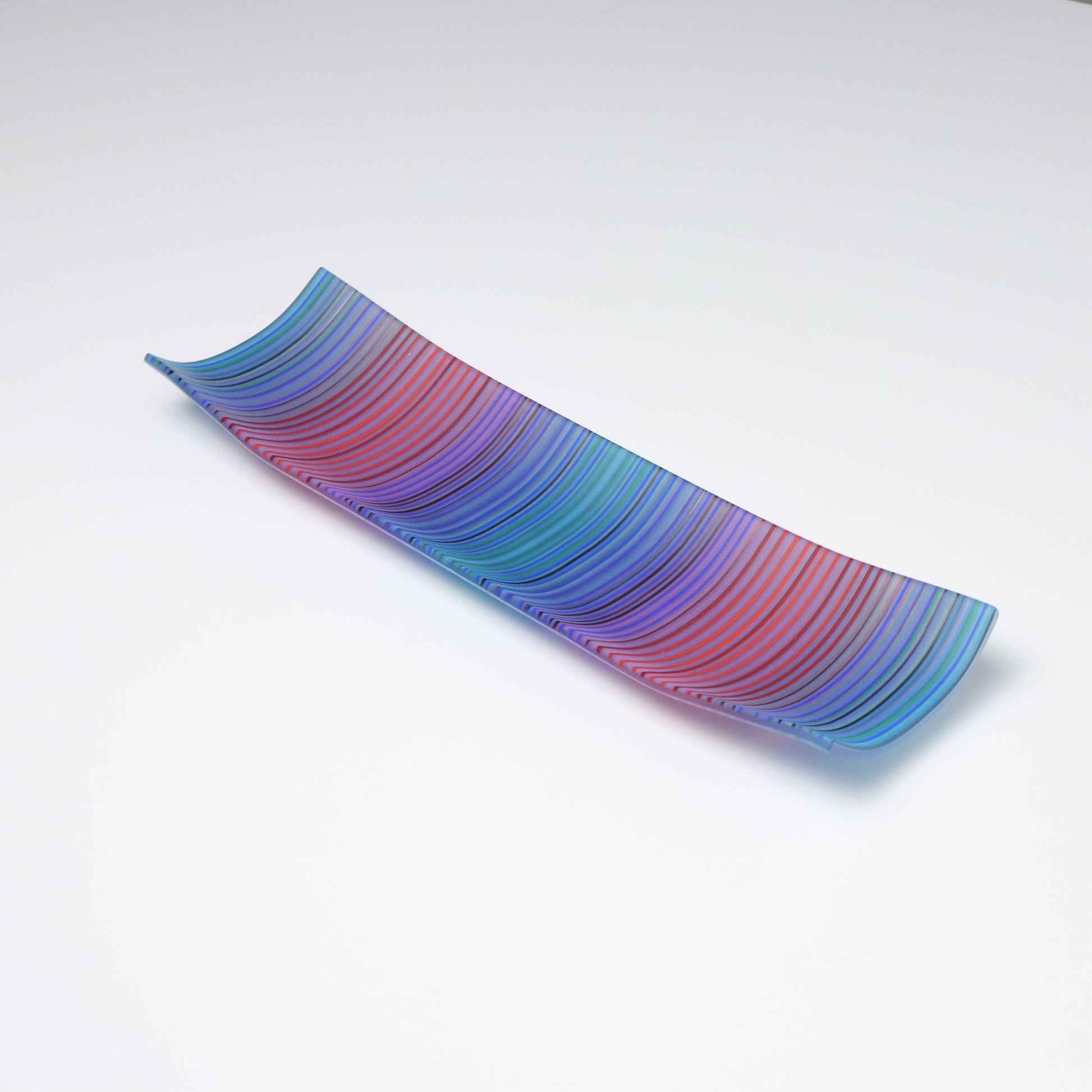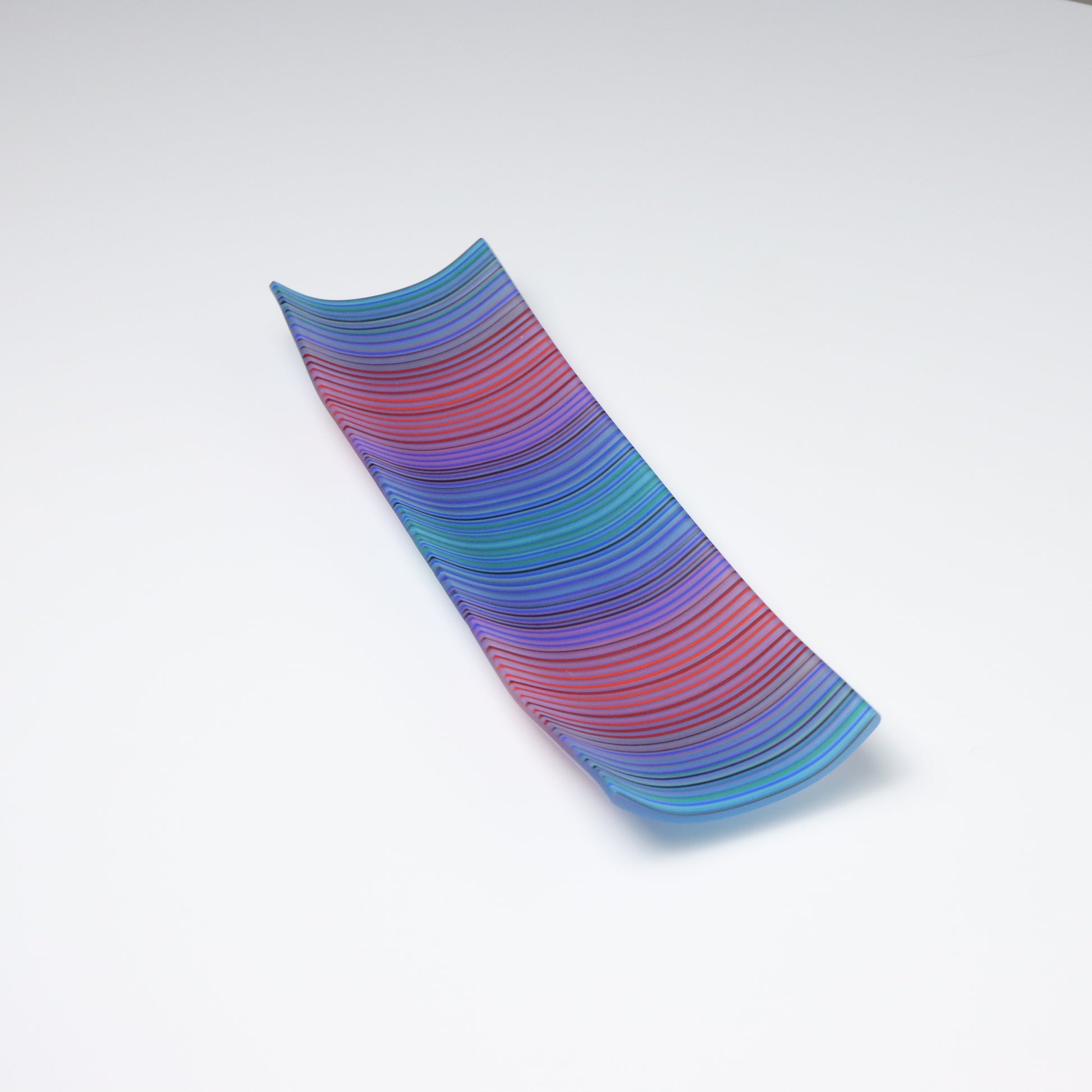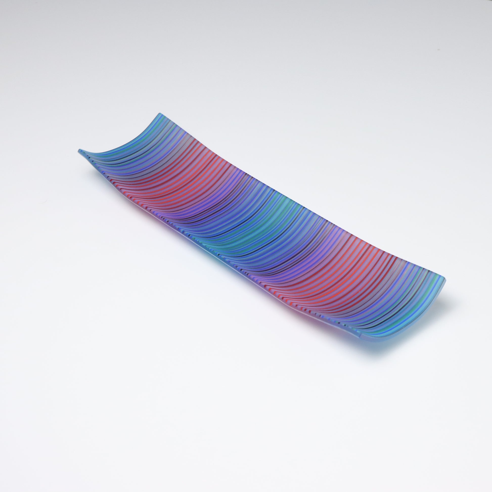 With a dreamlike gradation of pinks, purples, blues, and greens, this rectangular ColourWave Glass plate creates a captivating visual effect. Waves of colour blend together with dynamic energy, making it the perfect statement piece for modern or eclectic interiors. Its gently curved edges add a touch of sophistication, whether displayed alone or with other artwork.