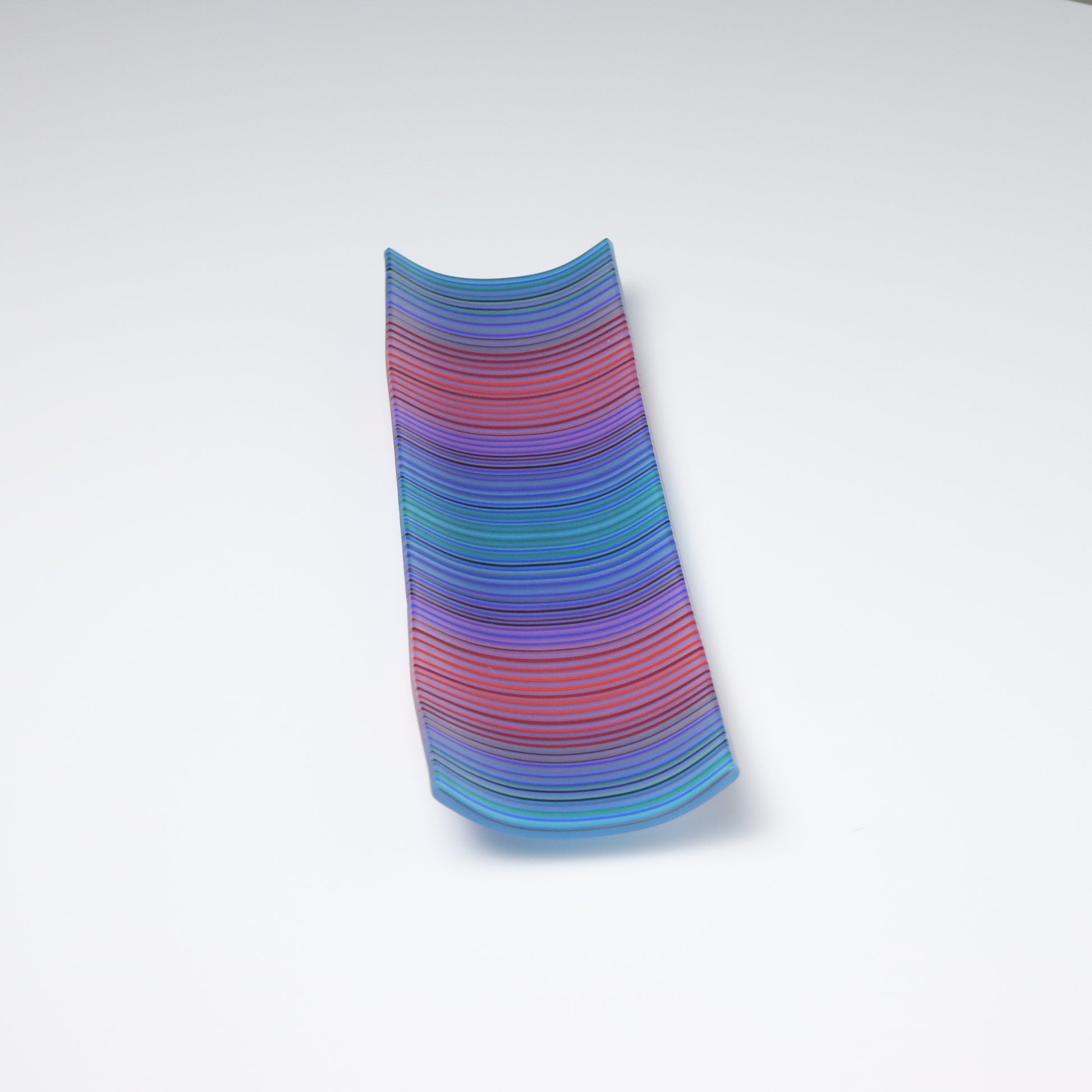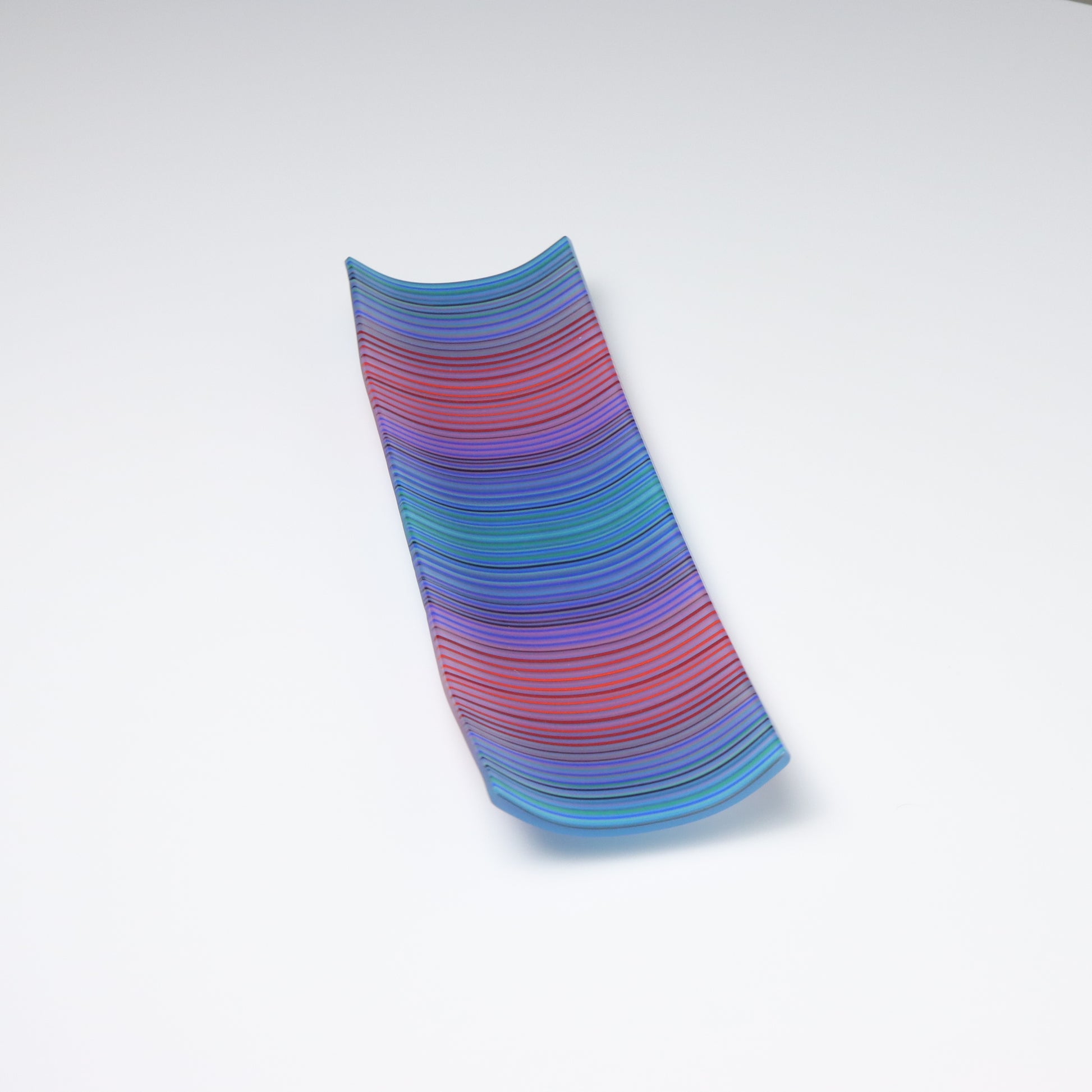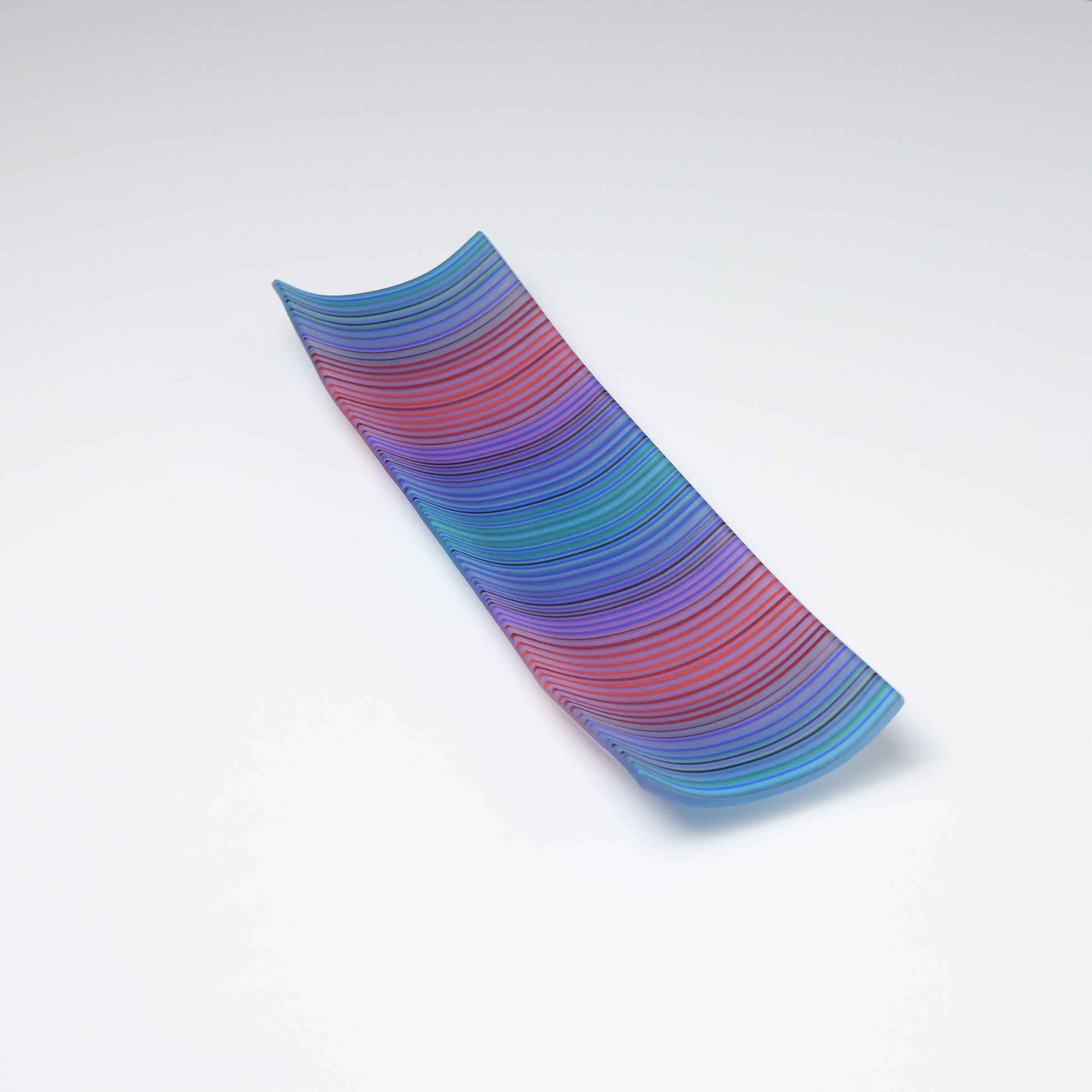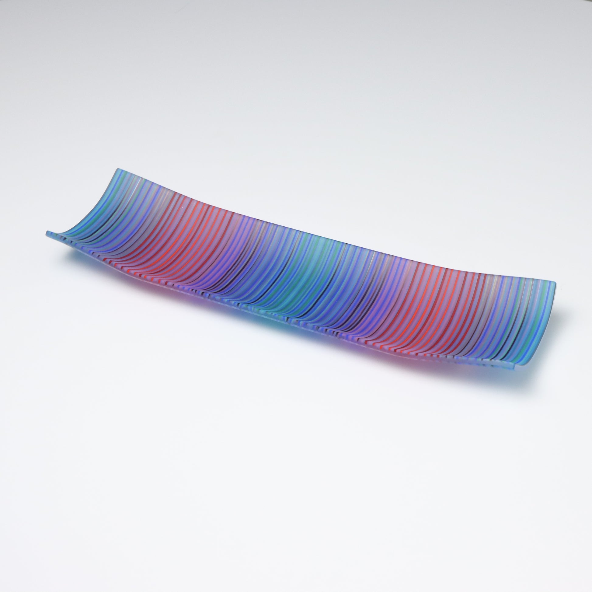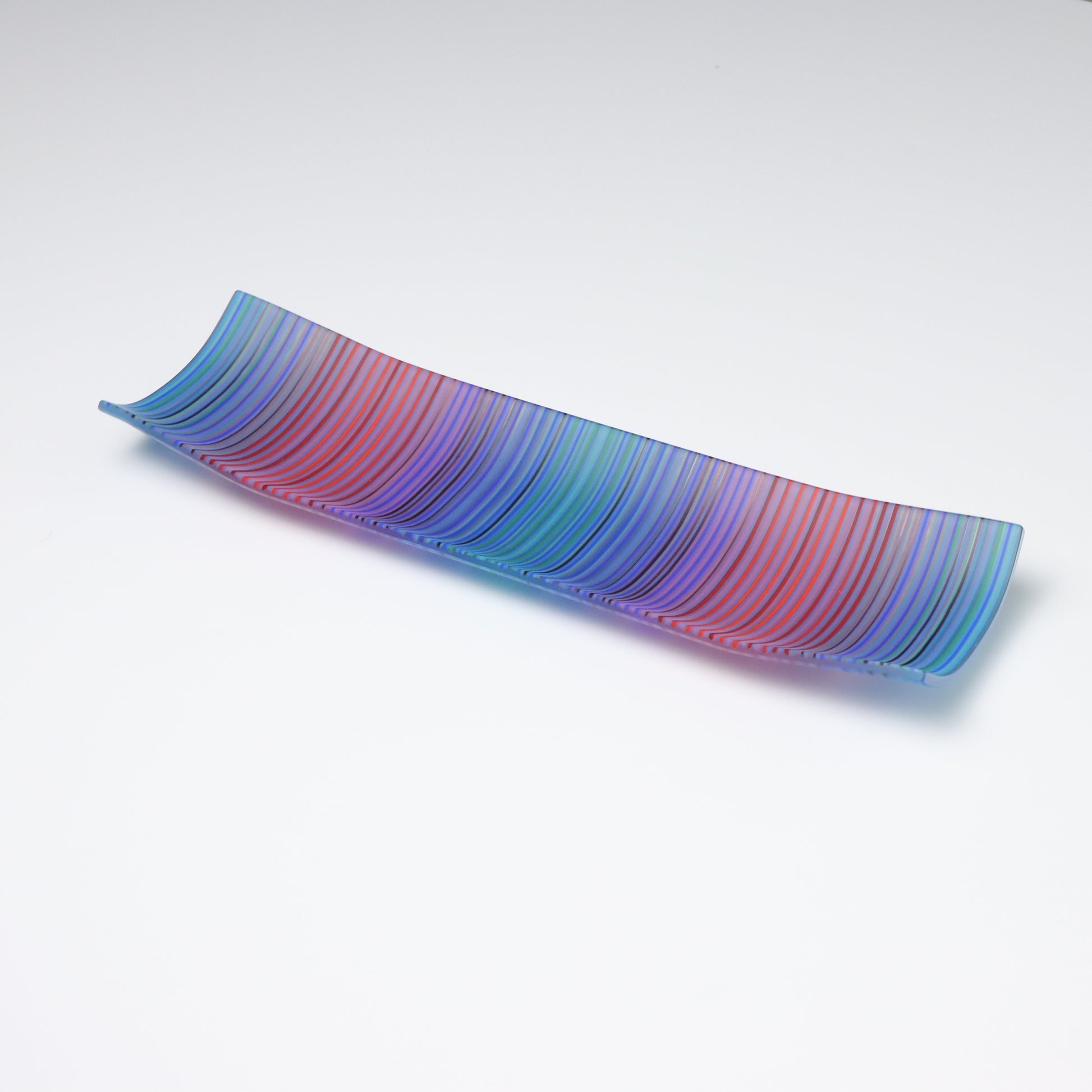 With a dreamlike gradation of pinks, purples, blues, and greens, this rectangular ColourWave Glass plate creates a captivating visual effect. Waves of colour blend together with dynamic energy, making it the perfect statement piece for modern or eclectic interiors. Its gently curved edges add a touch of sophistication, whether displayed alone or with other artwork.