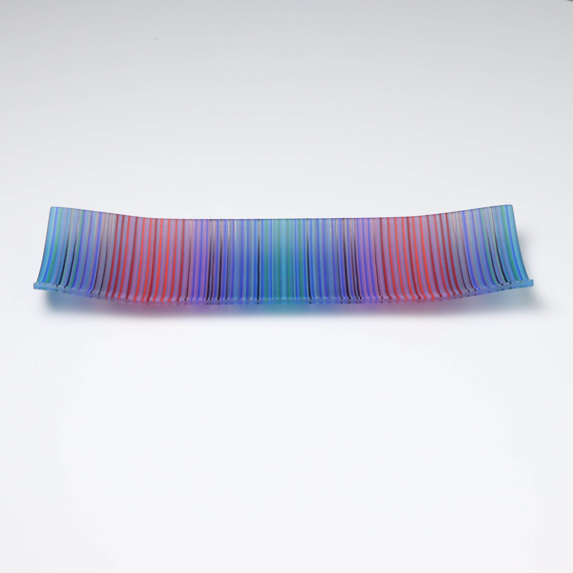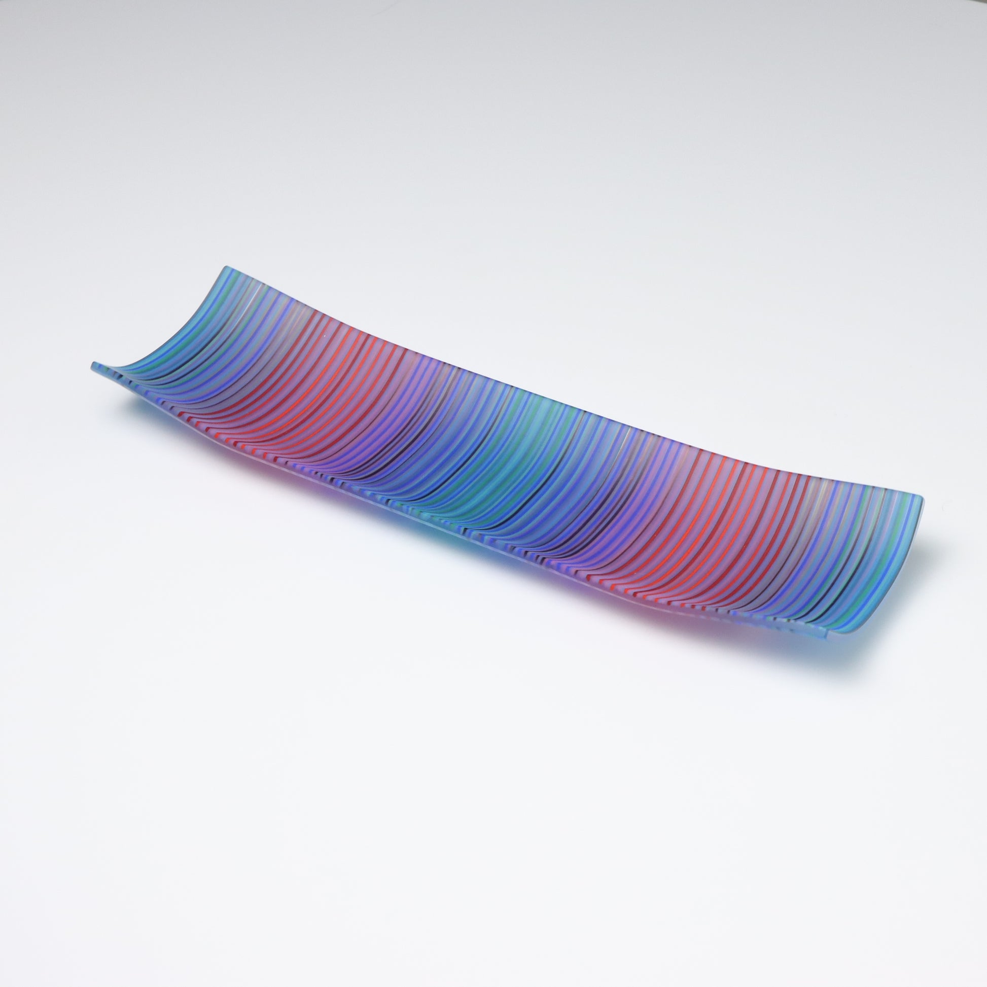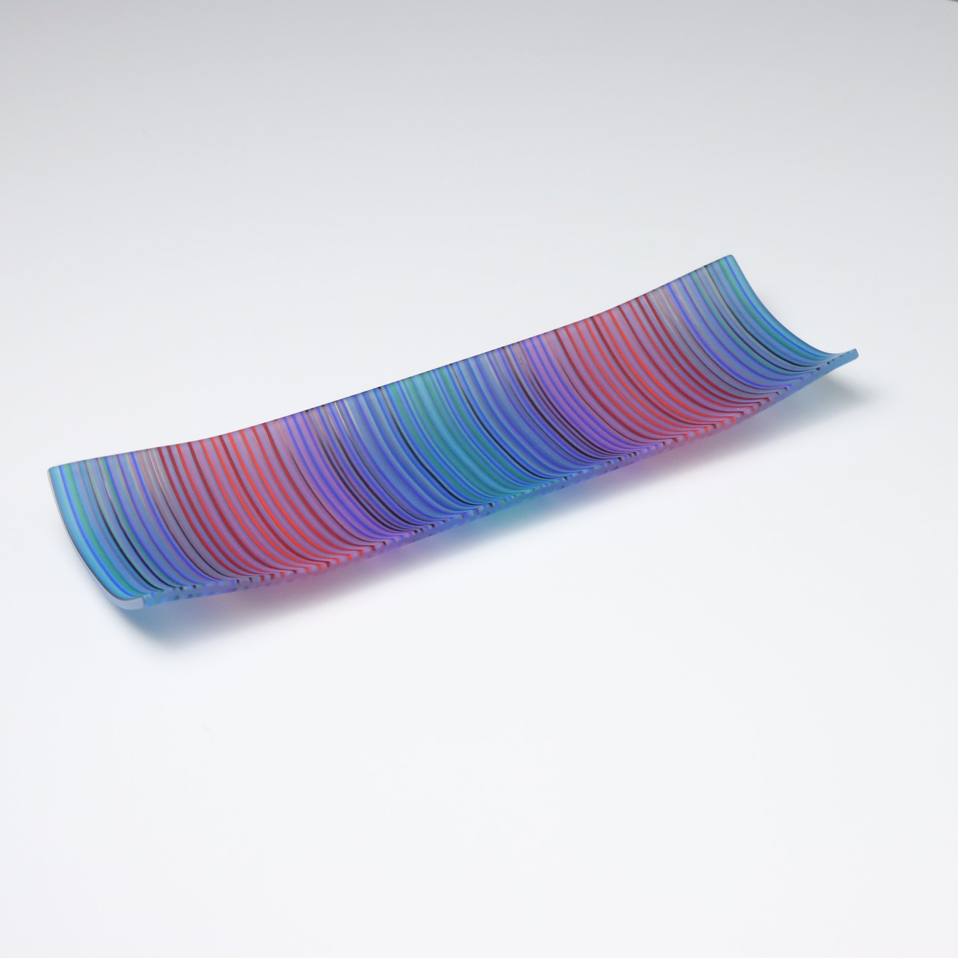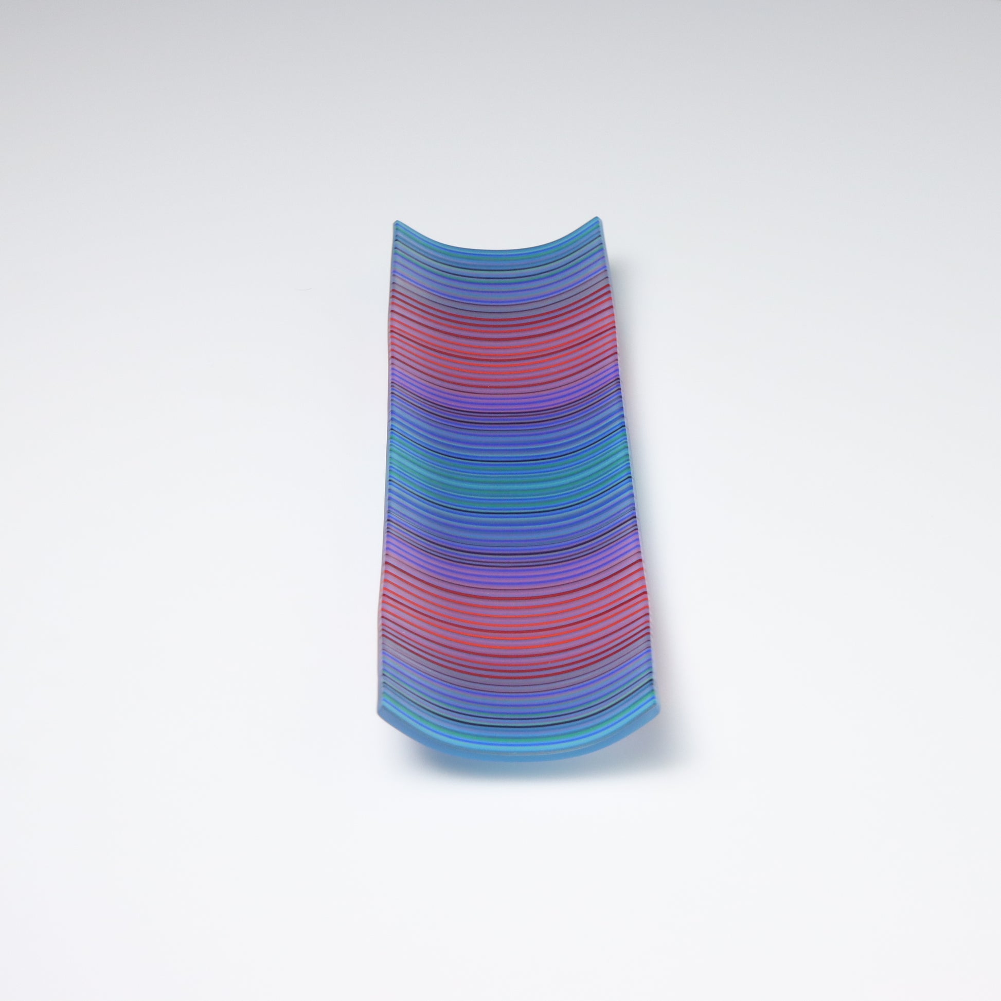 With a dreamlike gradation of pinks, purples, blues, and greens, this rectangular ColourWave Glass plate creates a captivating visual effect. Waves of colour blend together with dynamic energy, making it the perfect statement piece for modern or eclectic interiors. Its gently curved edges add a touch of sophistication, whether displayed alone or with other artwork.