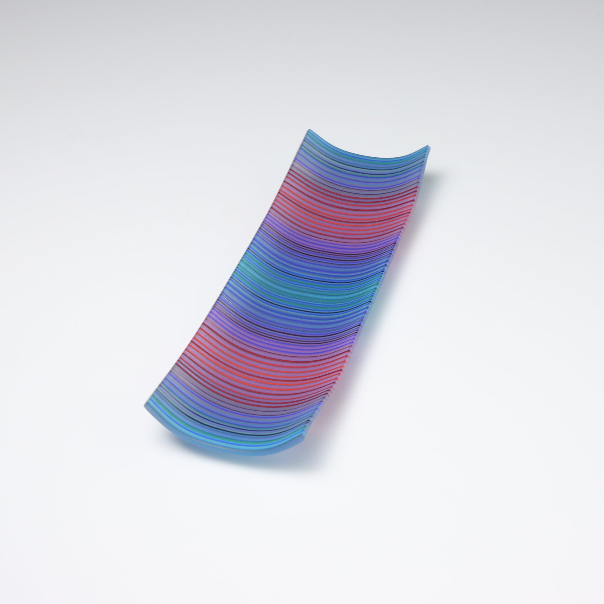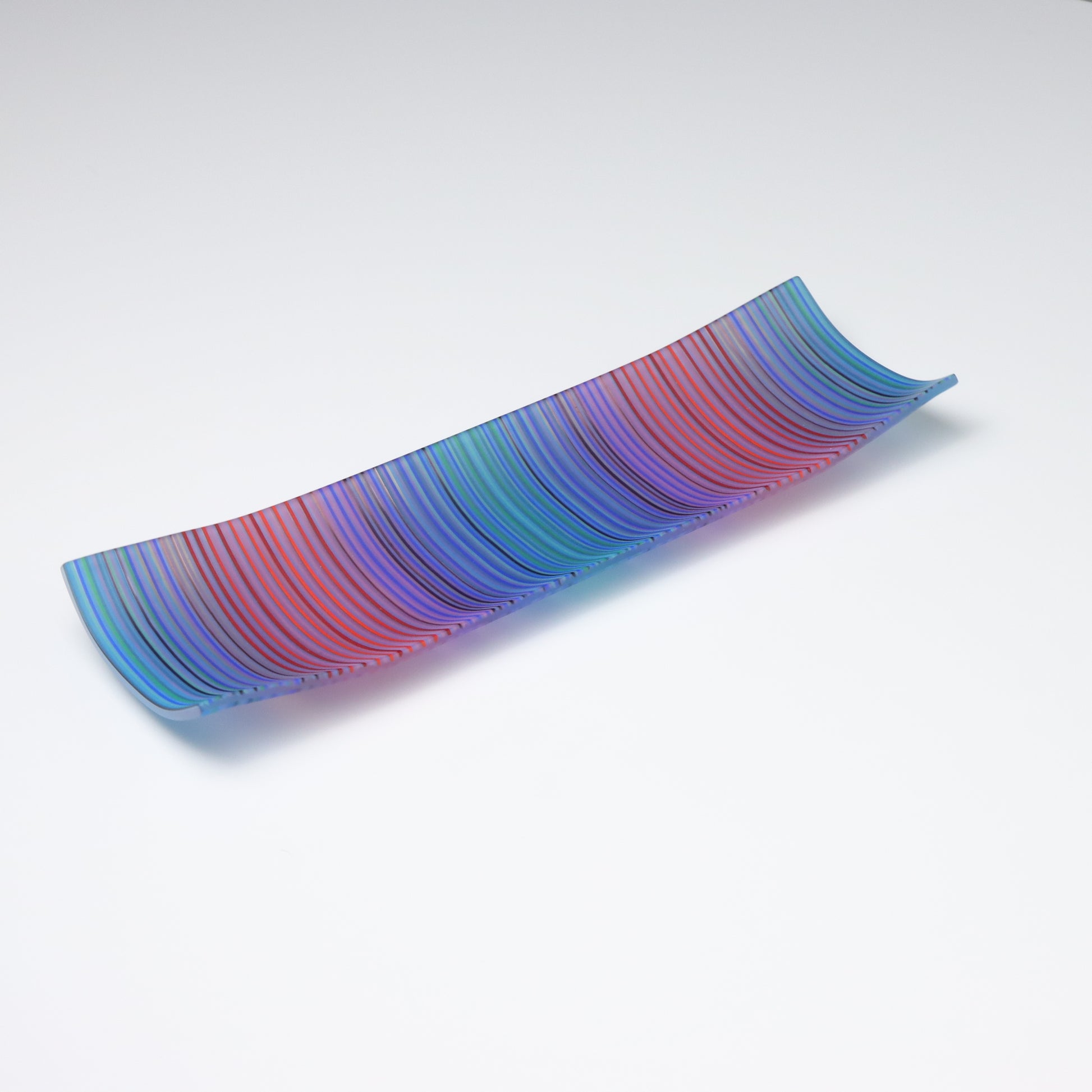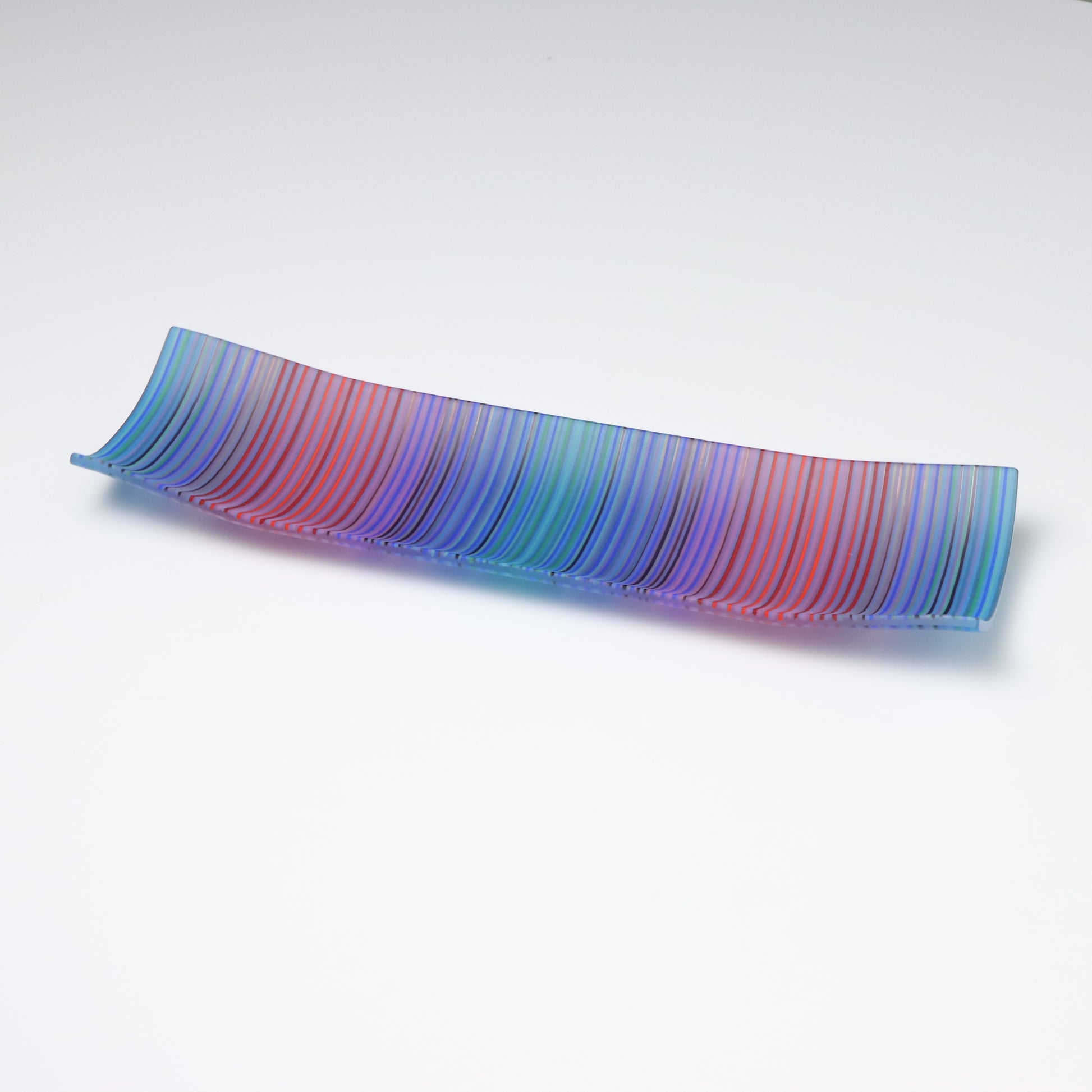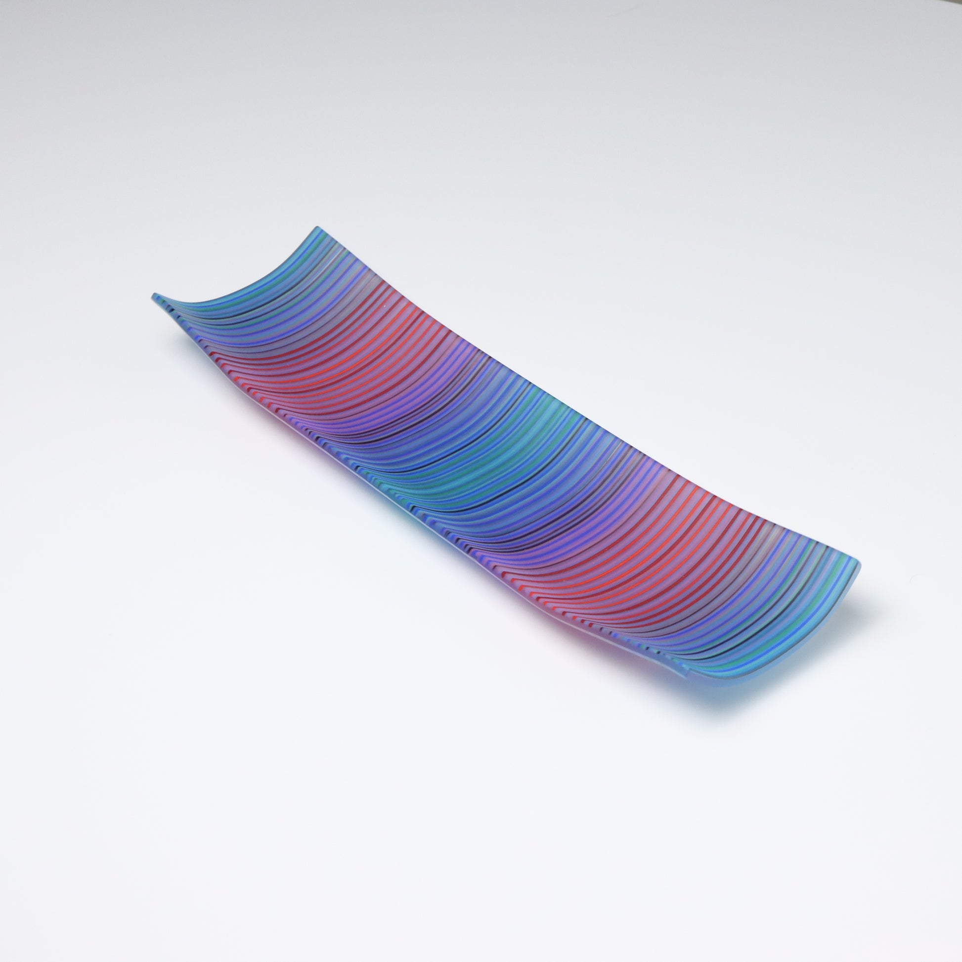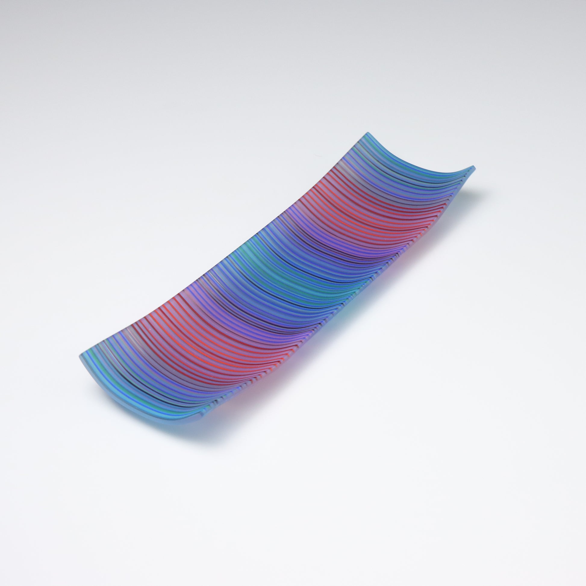 With a dreamlike gradation of pinks, purples, blues, and greens, this rectangular ColourWave Glass plate creates a captivating visual effect. Waves of colour blend together with dynamic energy, making it the perfect statement piece for modern or eclectic interiors. Its gently curved edges add a touch of sophistication, whether displayed alone or with other artwork.