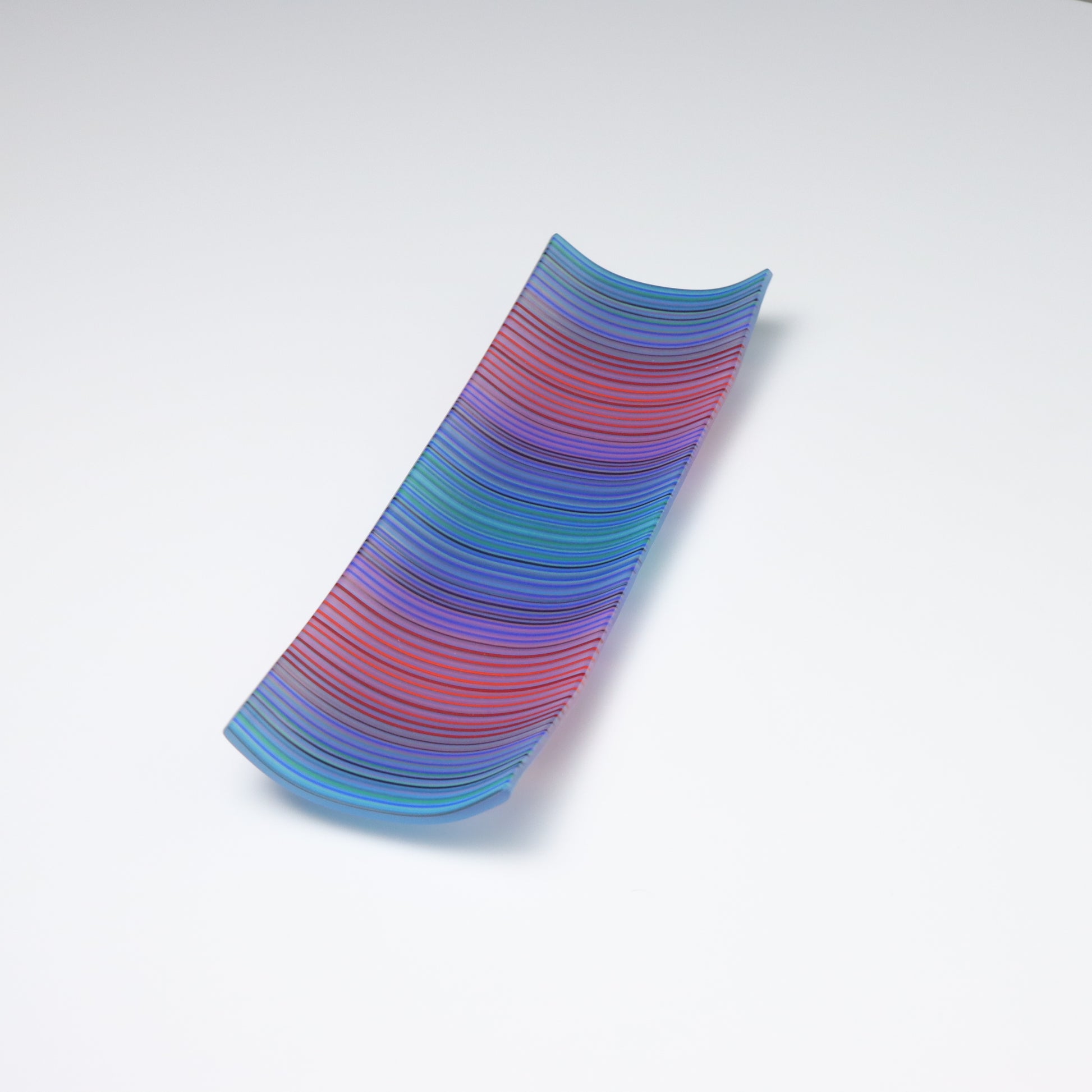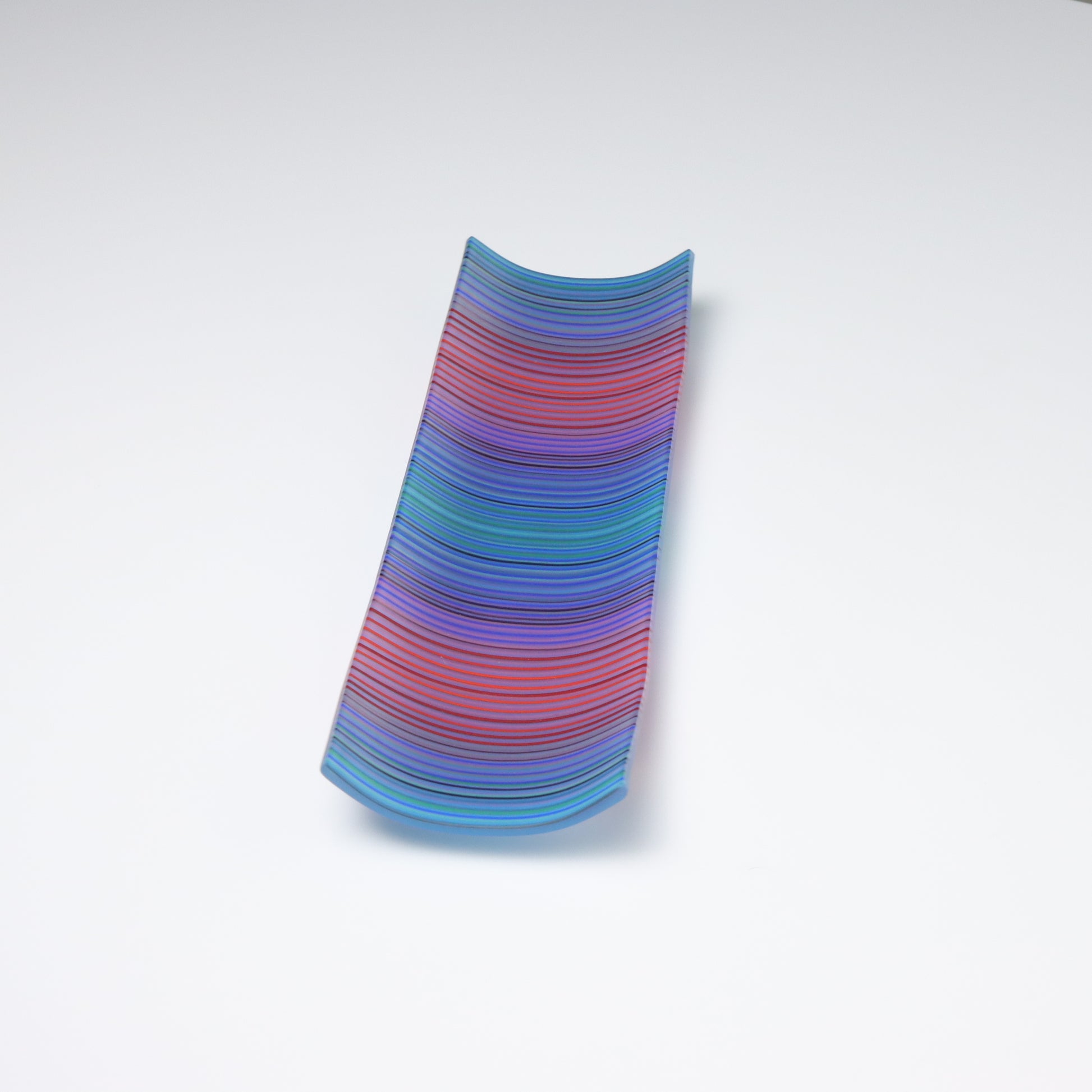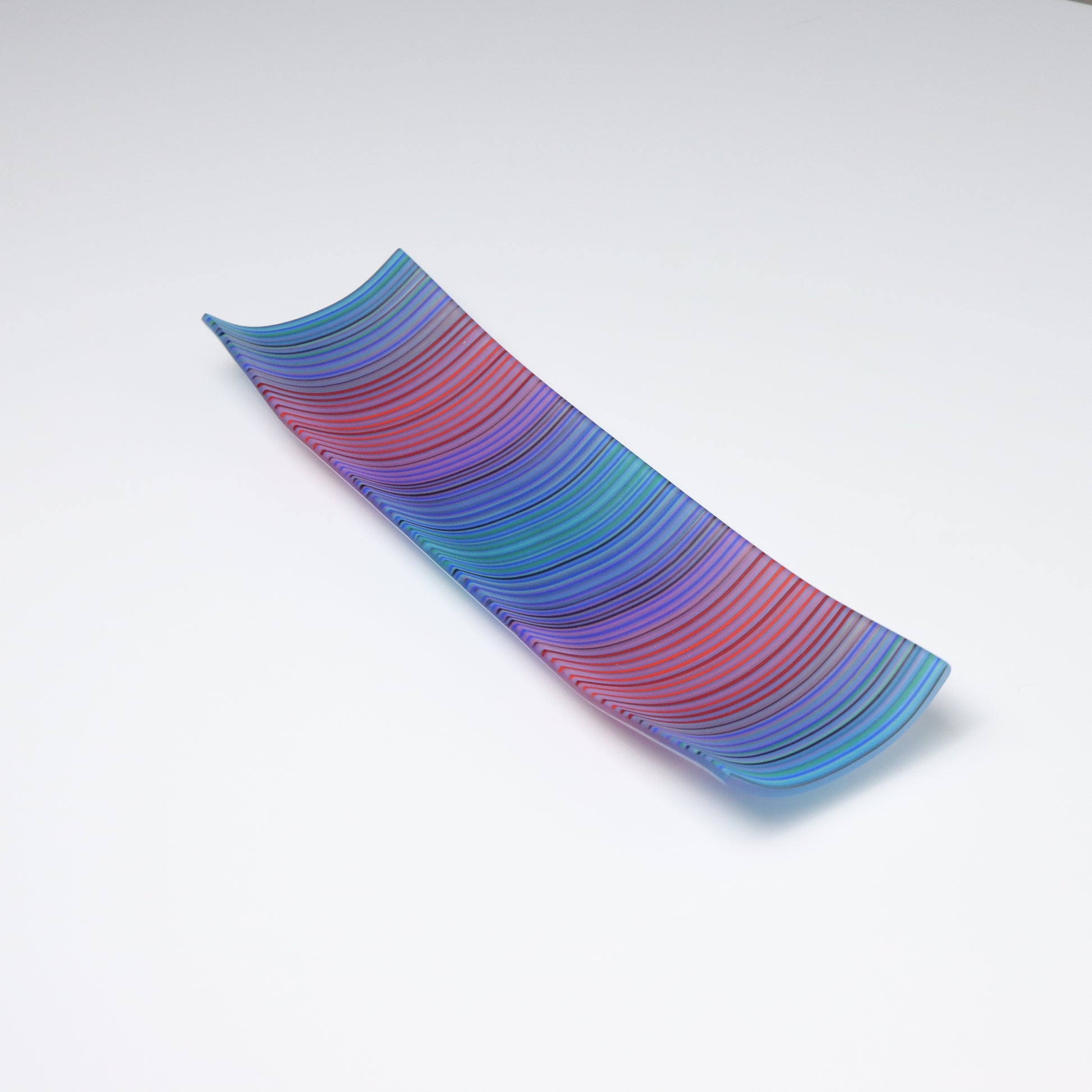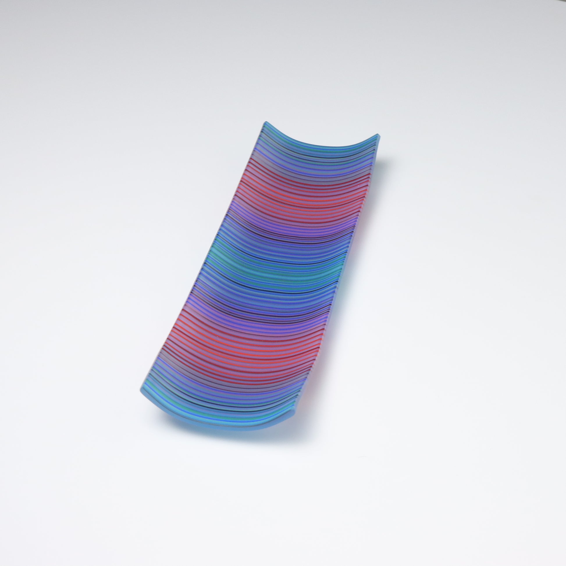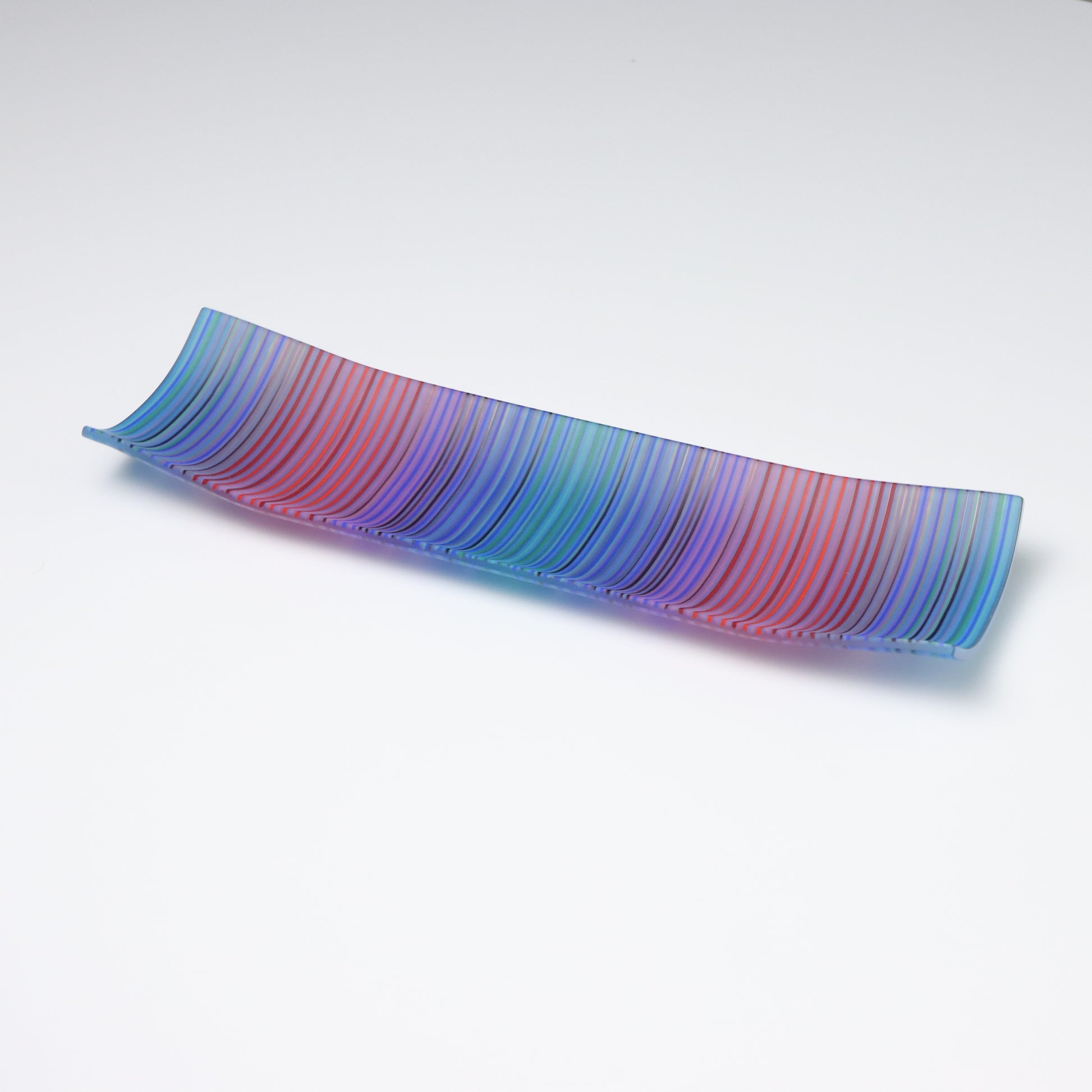 With a dreamlike gradation of pinks, purples, blues, and greens, this rectangular ColourWave Glass plate creates a captivating visual effect. Waves of colour blend together with dynamic energy, making it the perfect statement piece for modern or eclectic interiors. Its gently curved edges add a touch of sophistication, whether displayed alone or with other artwork.