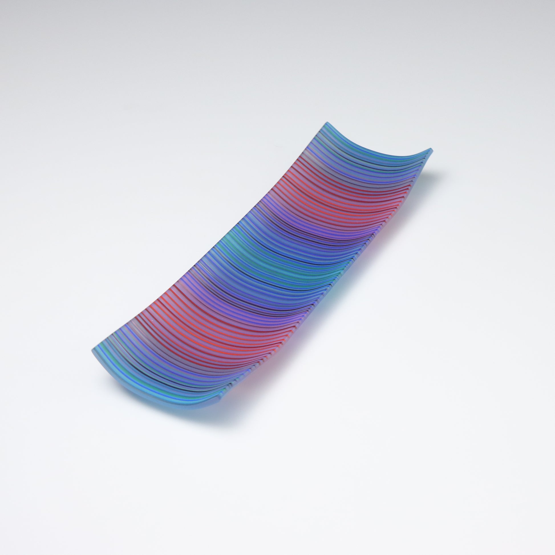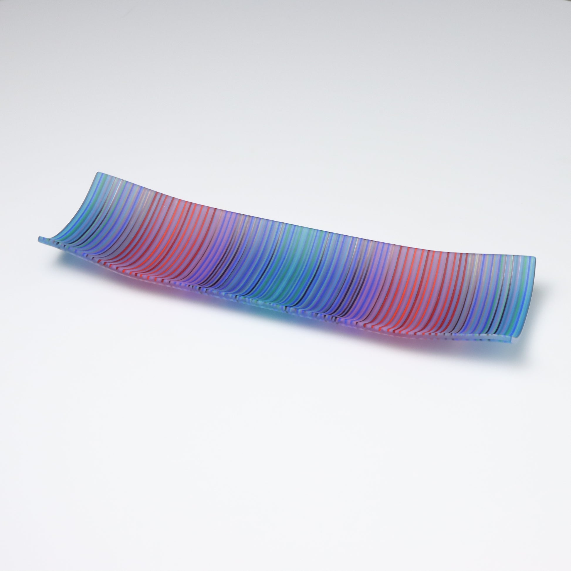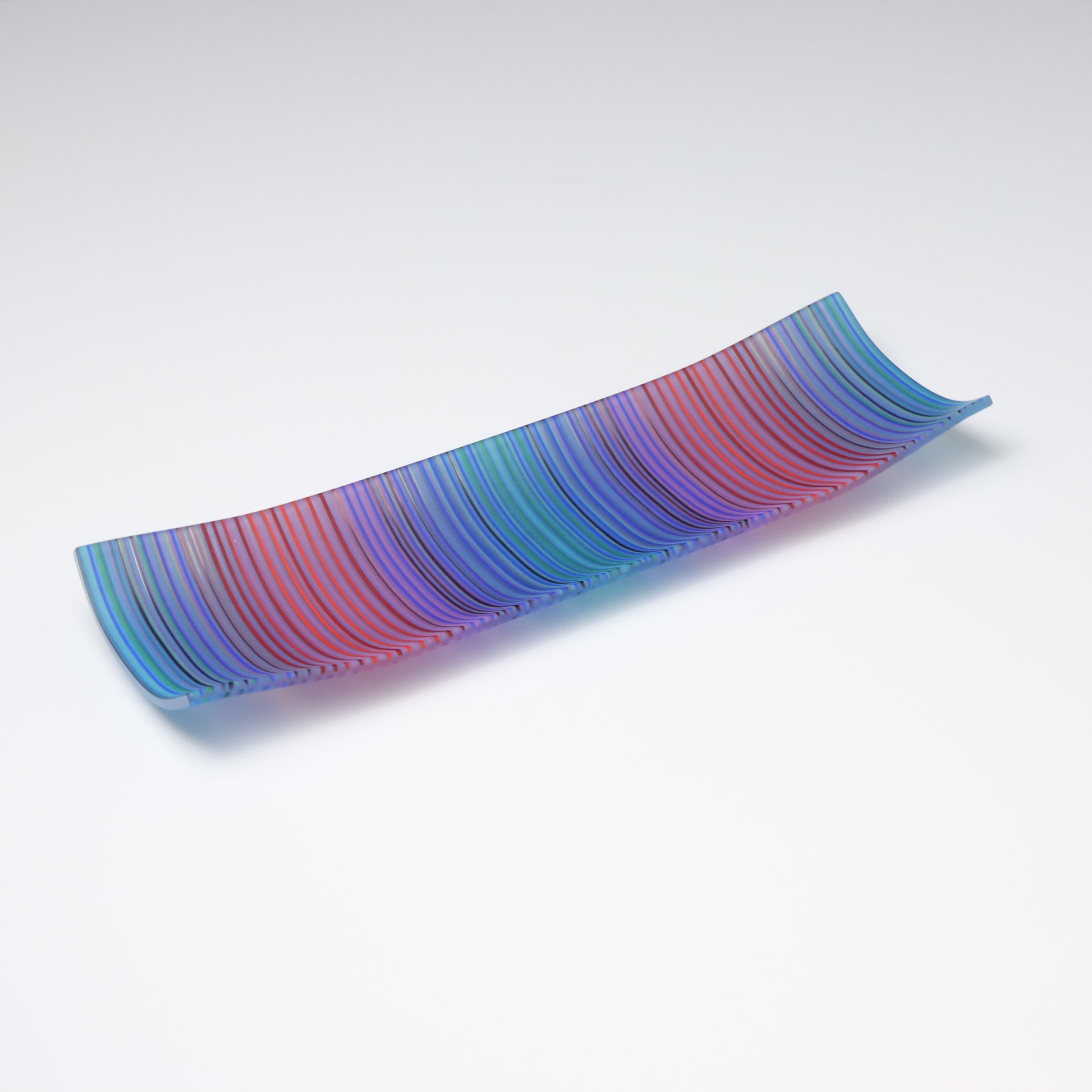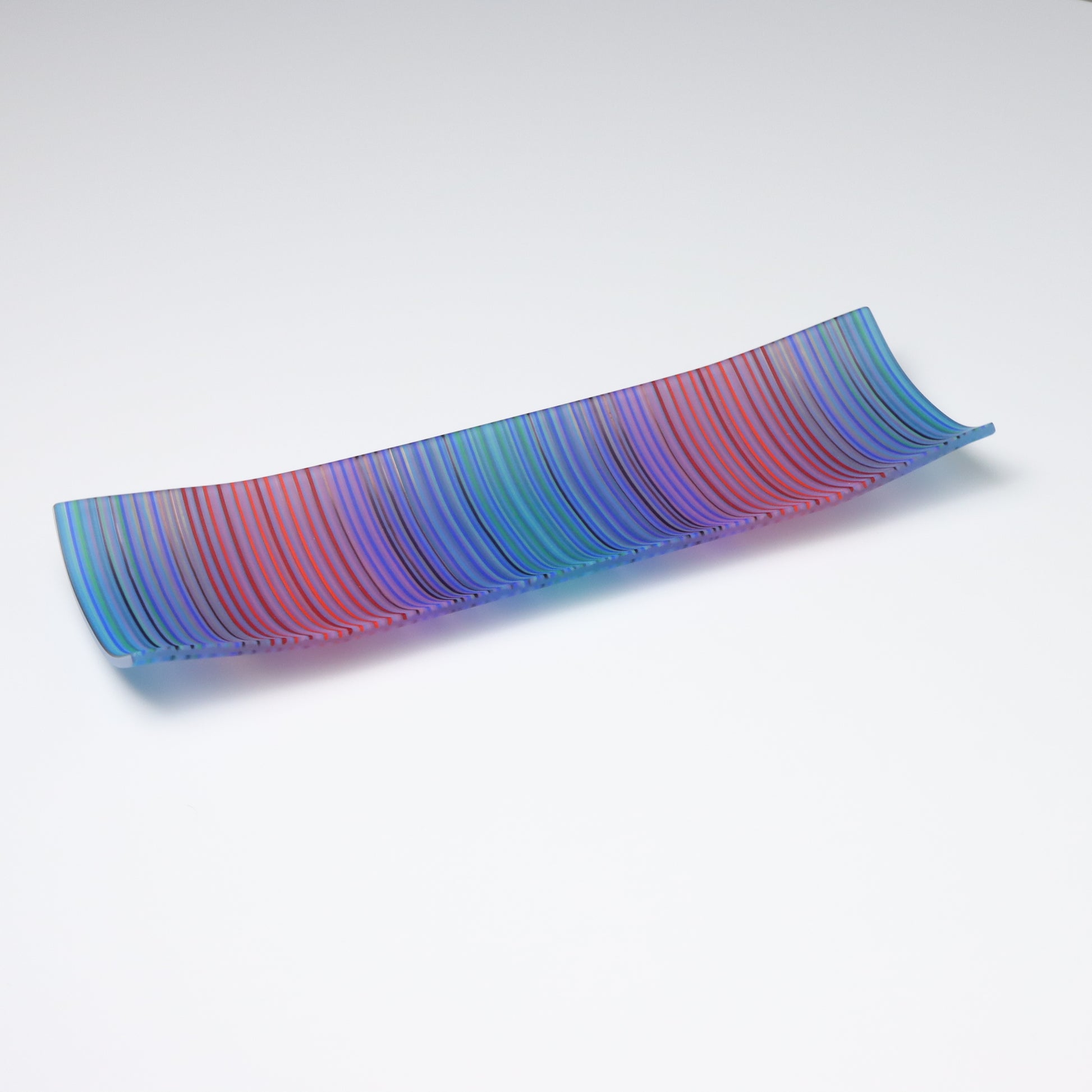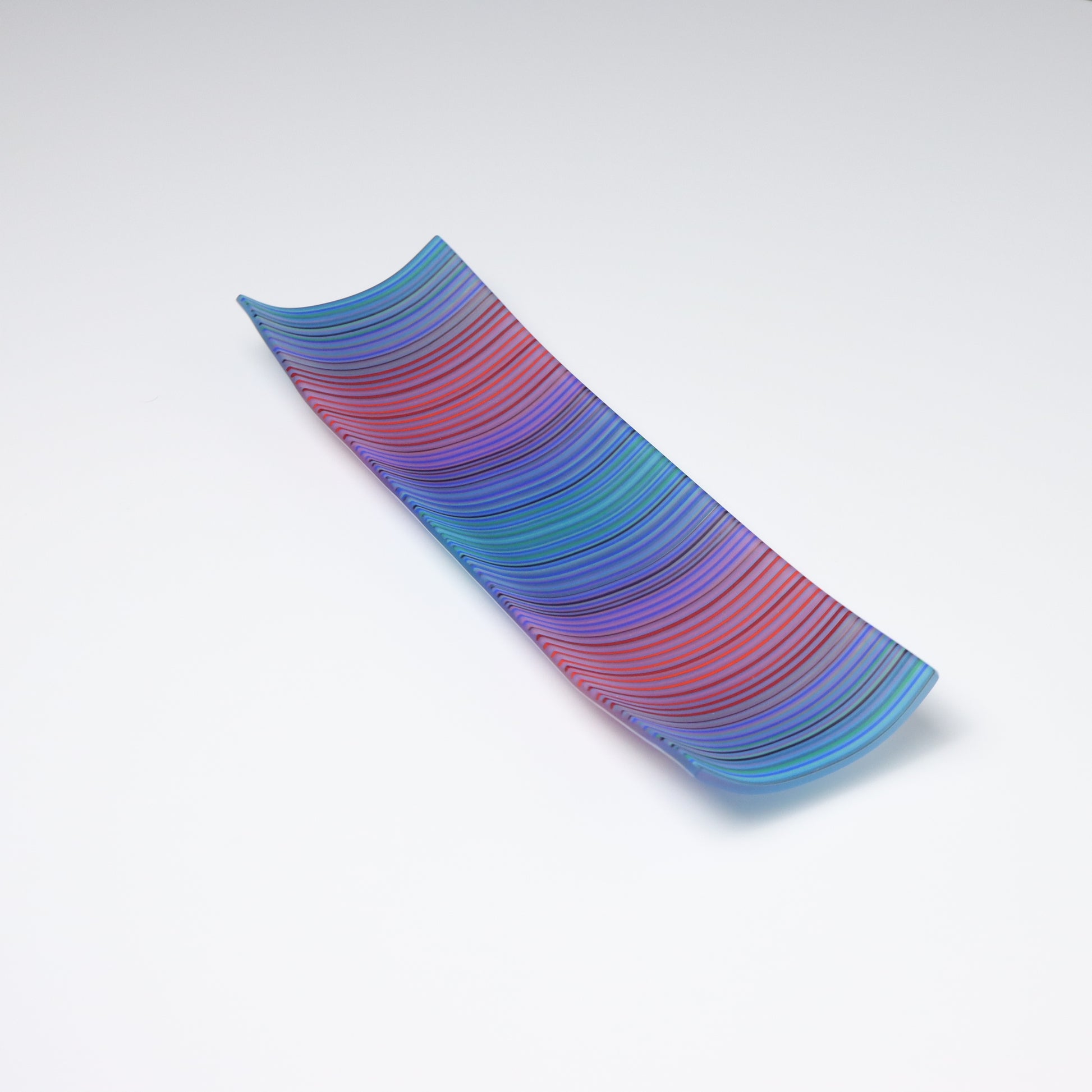 With a dreamlike gradation of pinks, purples, blues, and greens, this rectangular ColourWave Glass plate creates a captivating visual effect. Waves of colour blend together with dynamic energy, making it the perfect statement piece for modern or eclectic interiors. Its gently curved edges add a touch of sophistication, whether displayed alone or with other artwork.