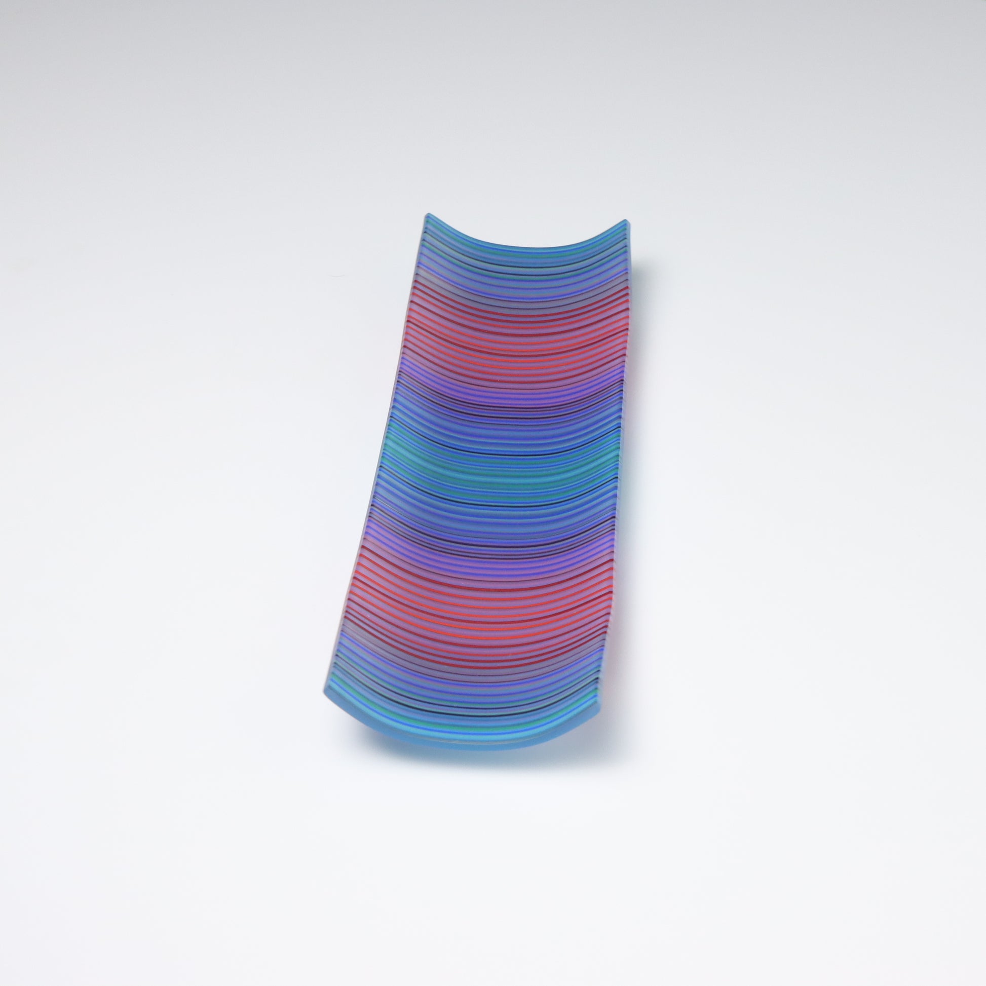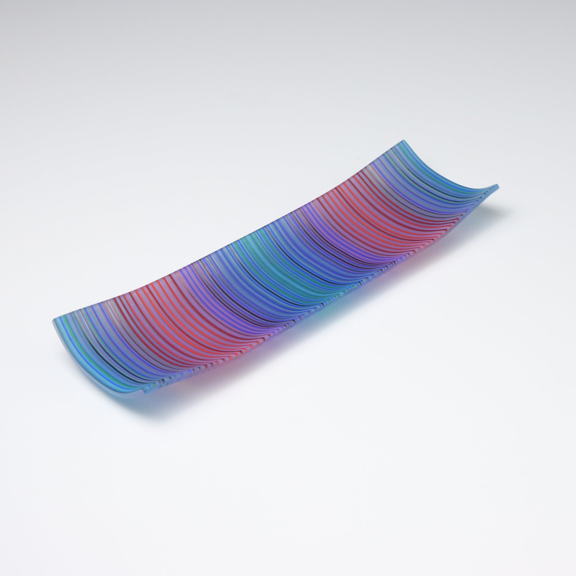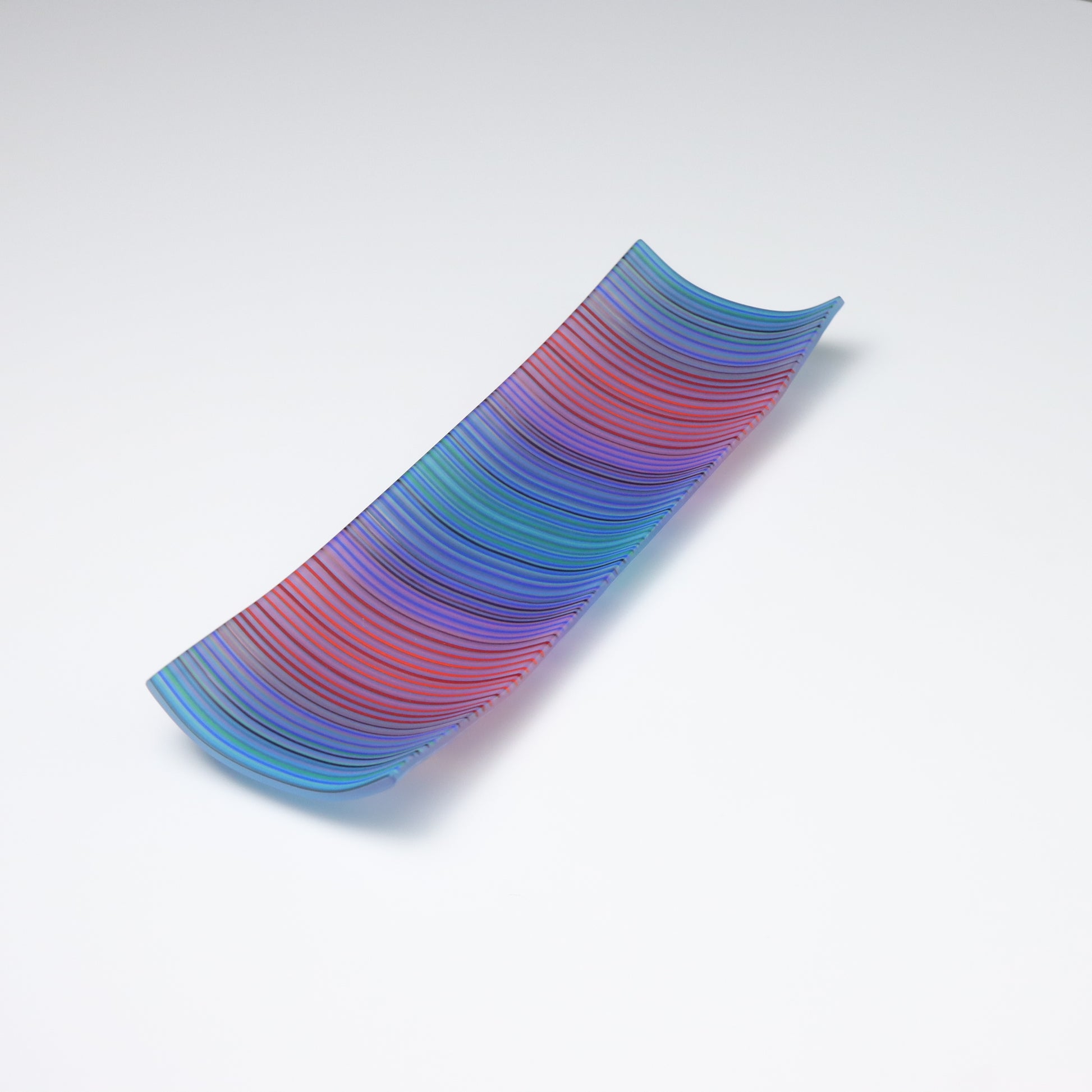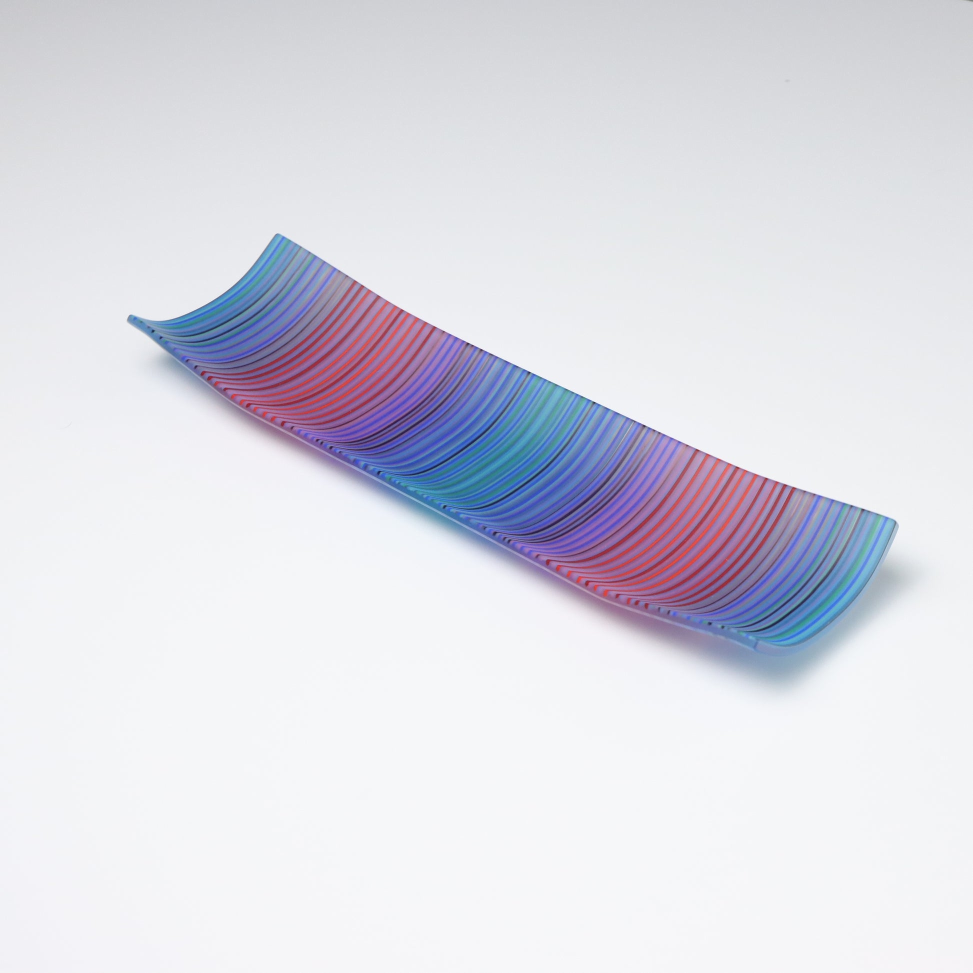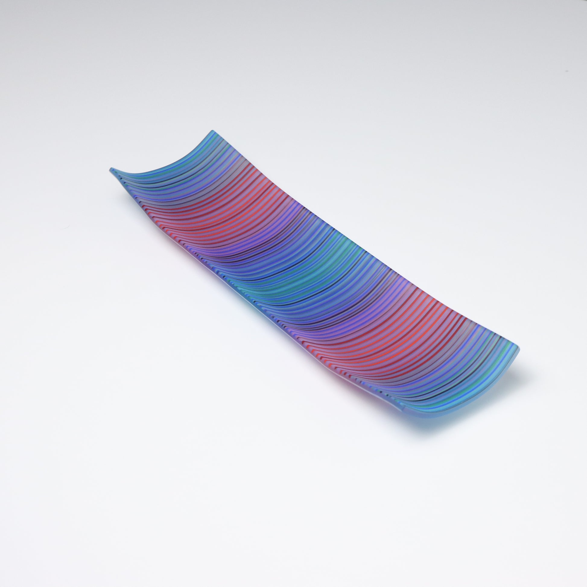 With a dreamlike gradation of pinks, purples, blues, and greens, this rectangular ColourWave Glass plate creates a captivating visual effect. Waves of colour blend together with dynamic energy, making it the perfect statement piece for modern or eclectic interiors. Its gently curved edges add a touch of sophistication, whether displayed alone or with other artwork.