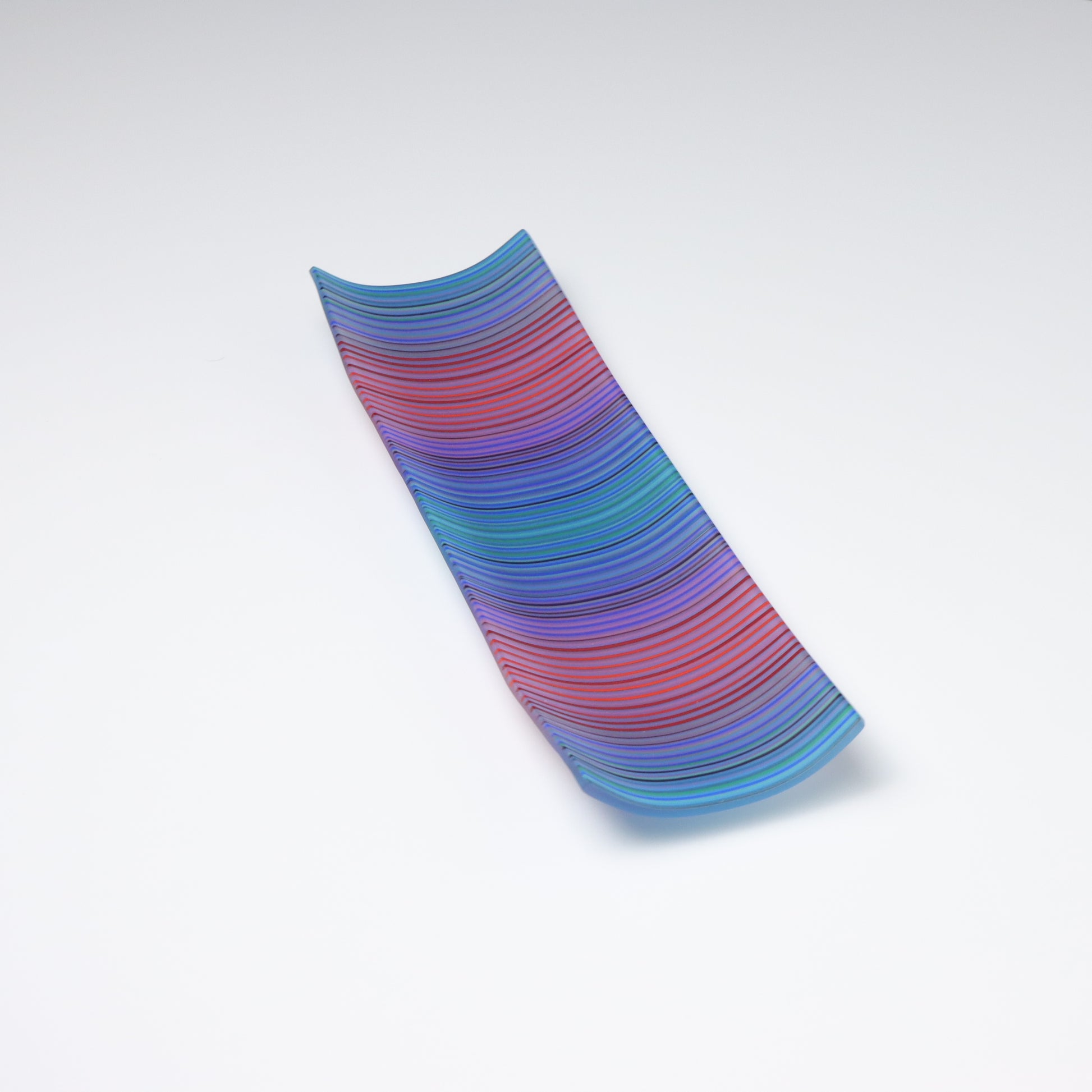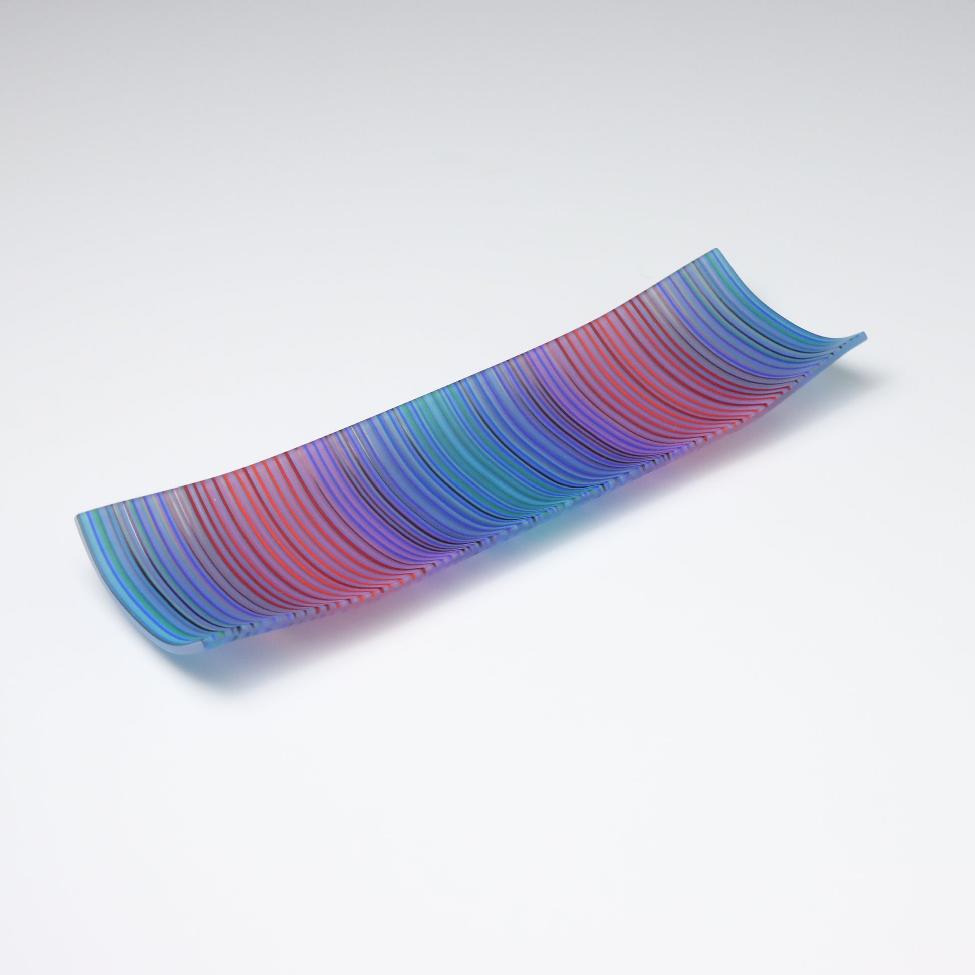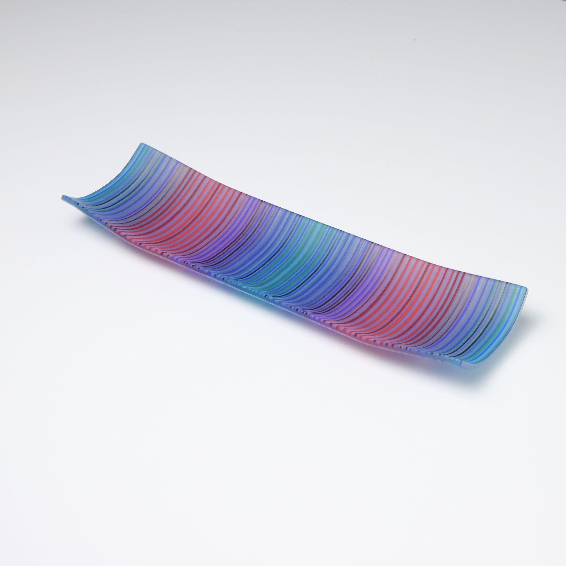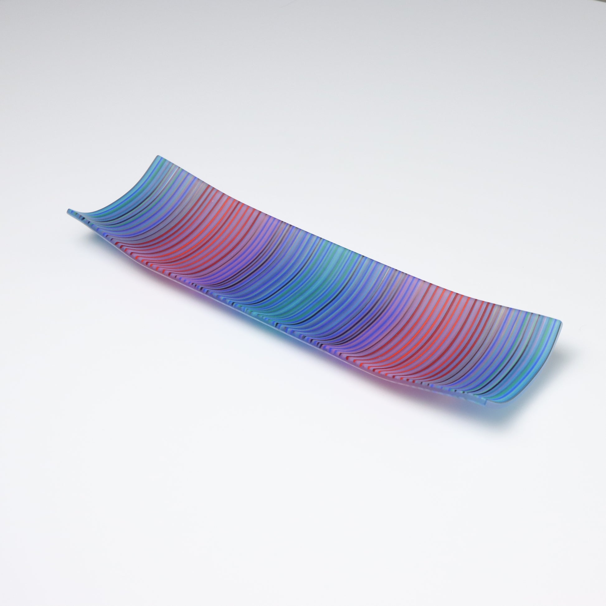 With a dreamlike gradation of pinks, purples, blues, and greens, this rectangular ColourWave Glass plate creates a captivating visual effect. Waves of colour blend together with dynamic energy, making it the perfect statement piece for modern or eclectic interiors. Its gently curved edges add a touch of sophistication, whether displayed alone or with other artwork.