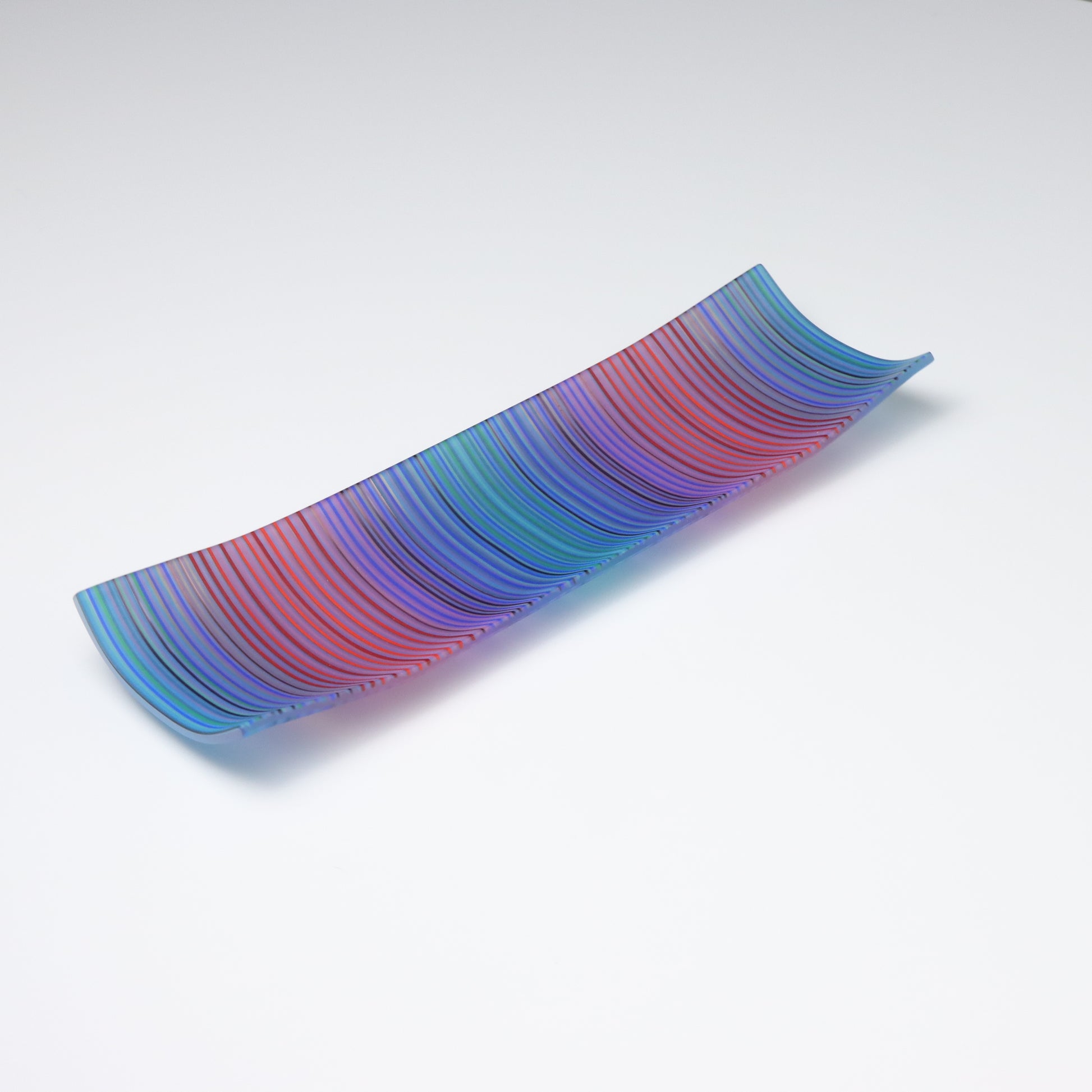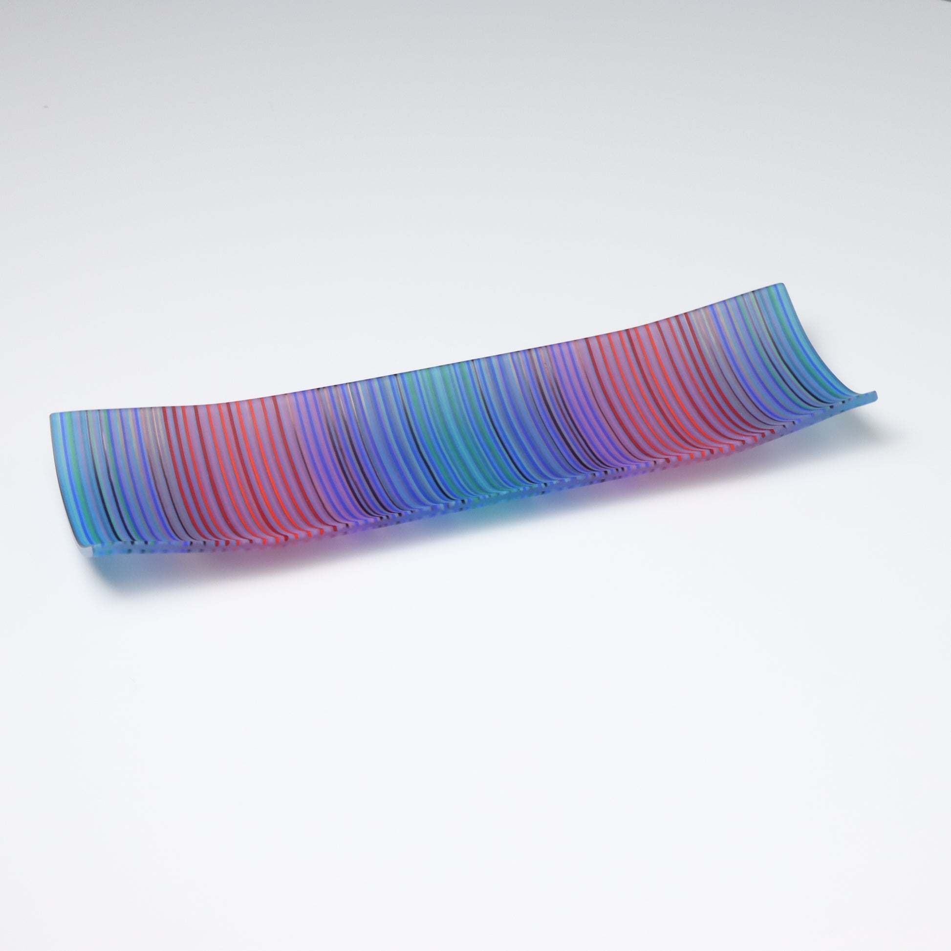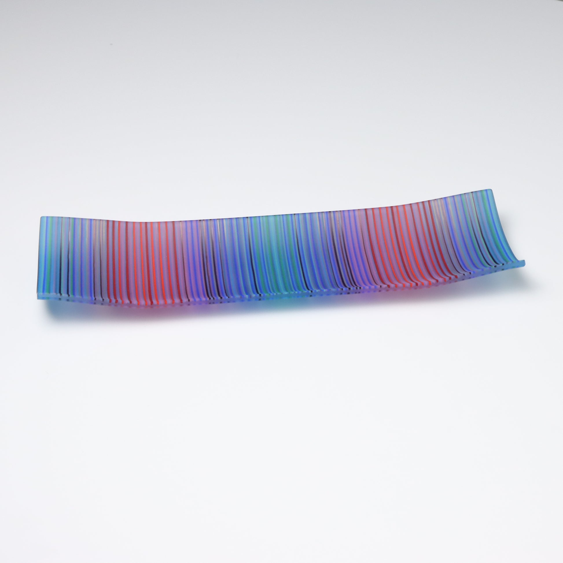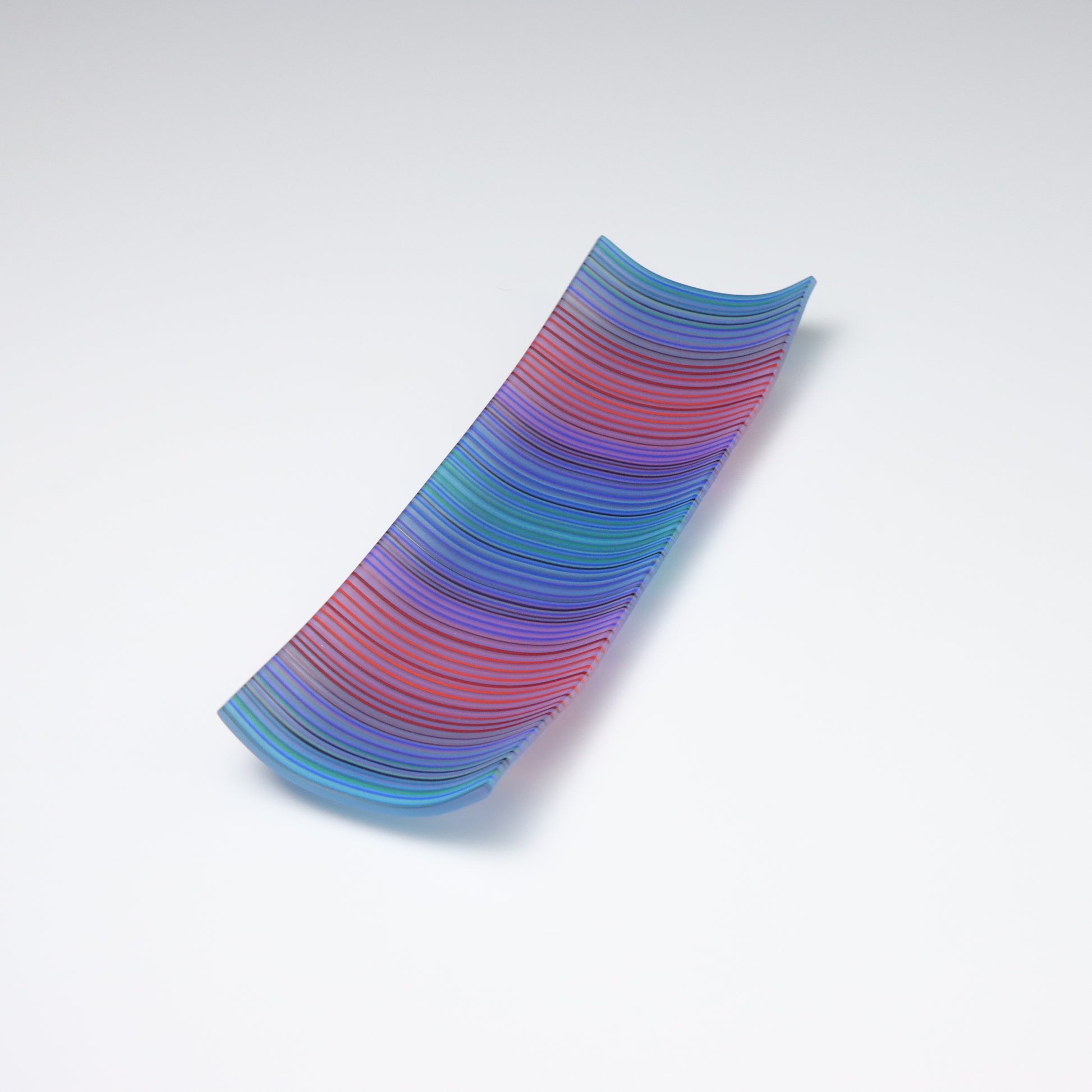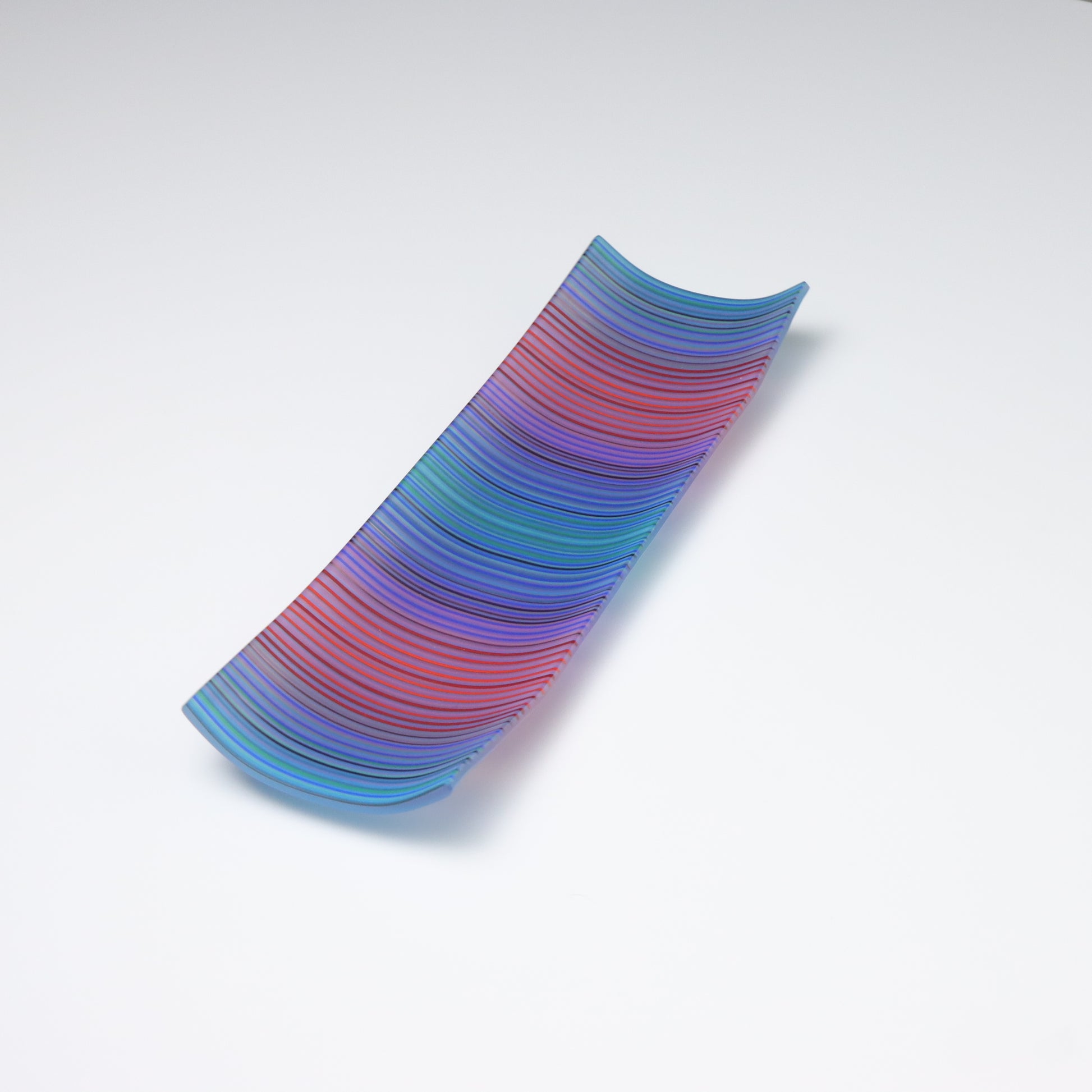 With a dreamlike gradation of pinks, purples, blues, and greens, this rectangular ColourWave Glass plate creates a captivating visual effect. Waves of colour blend together with dynamic energy, making it the perfect statement piece for modern or eclectic interiors. Its gently curved edges add a touch of sophistication, whether displayed alone or with other artwork.