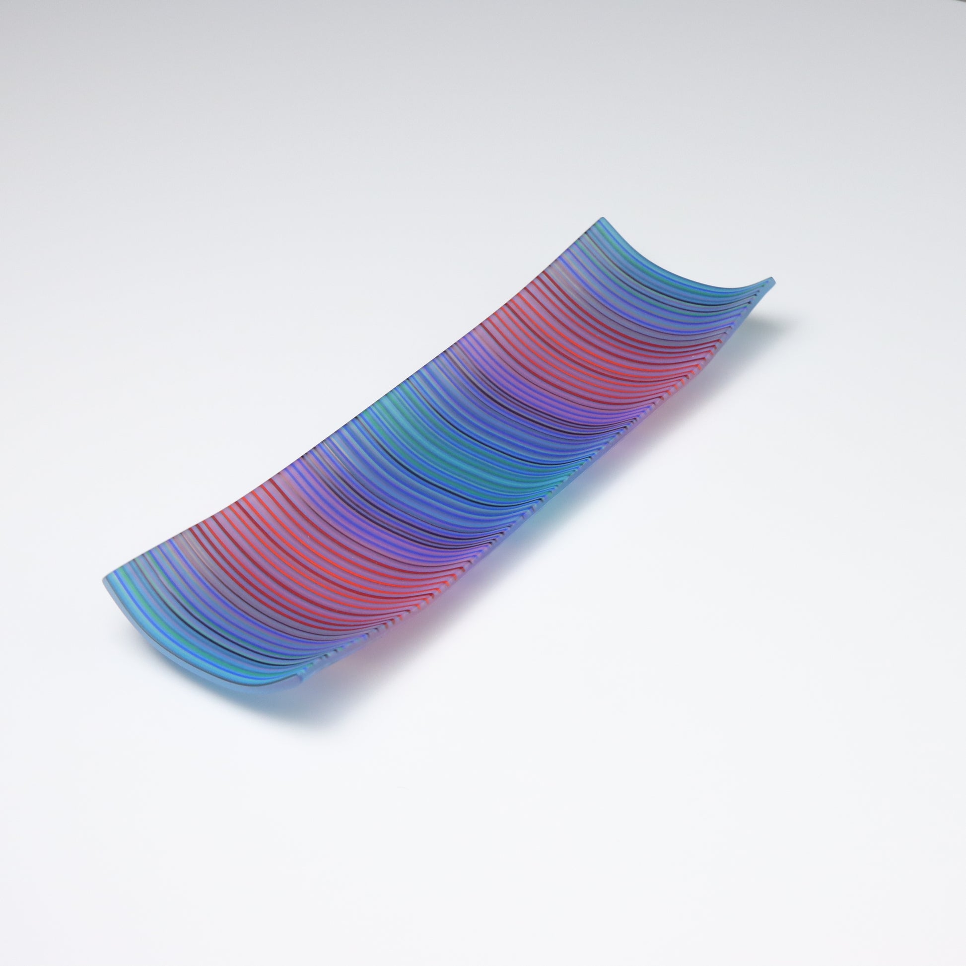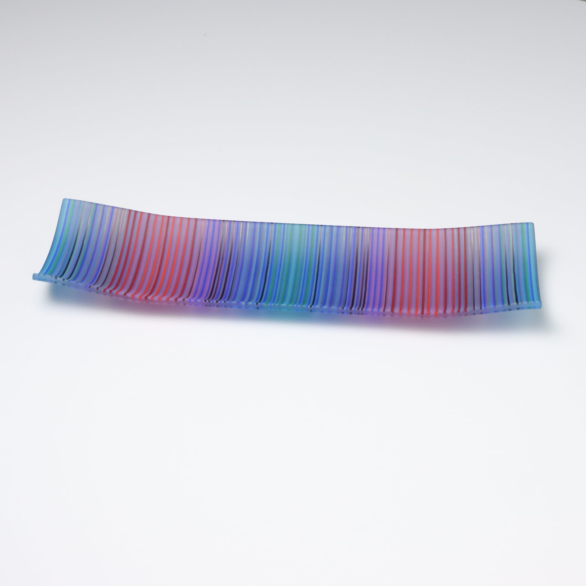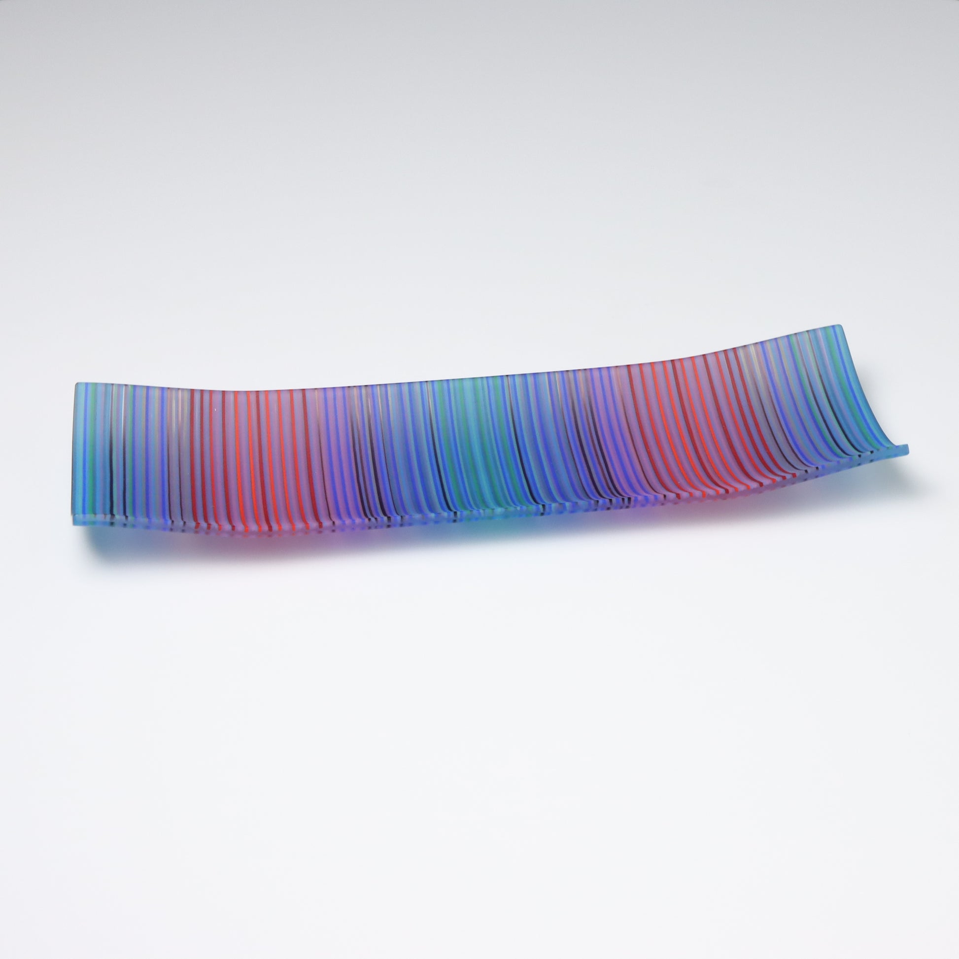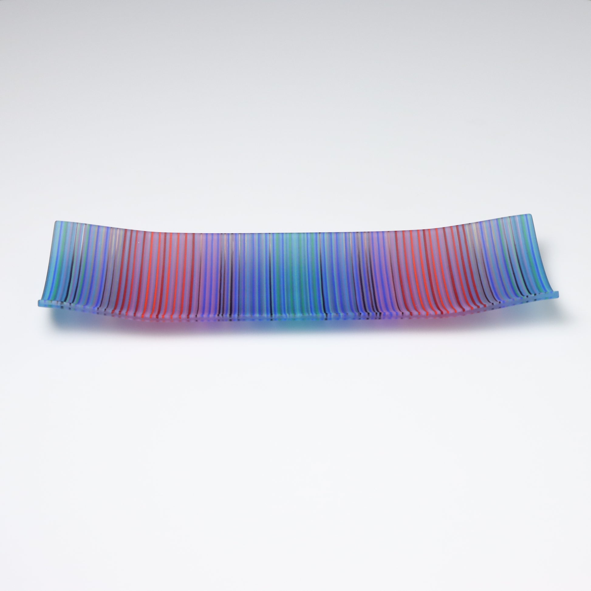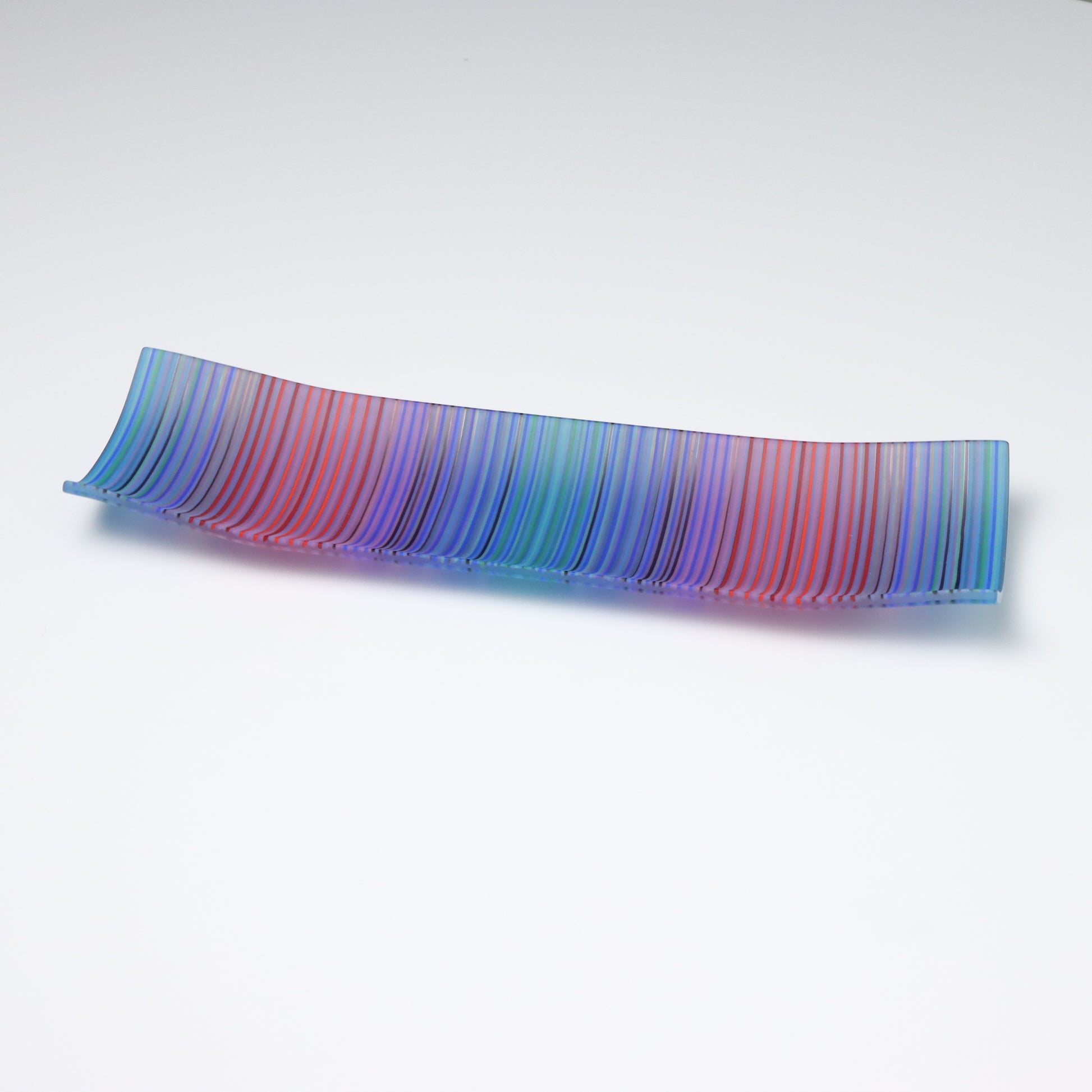With a dreamlike gradation of pinks, purples, blues, and greens, this rectangular ColourWave Glass plate creates a captivating visual effect. Waves of colour blend together with dynamic energy, making it the perfect statement piece for modern or eclectic interiors. Its gently curved edges add a touch of sophistication, whether displayed alone or with other artwork.