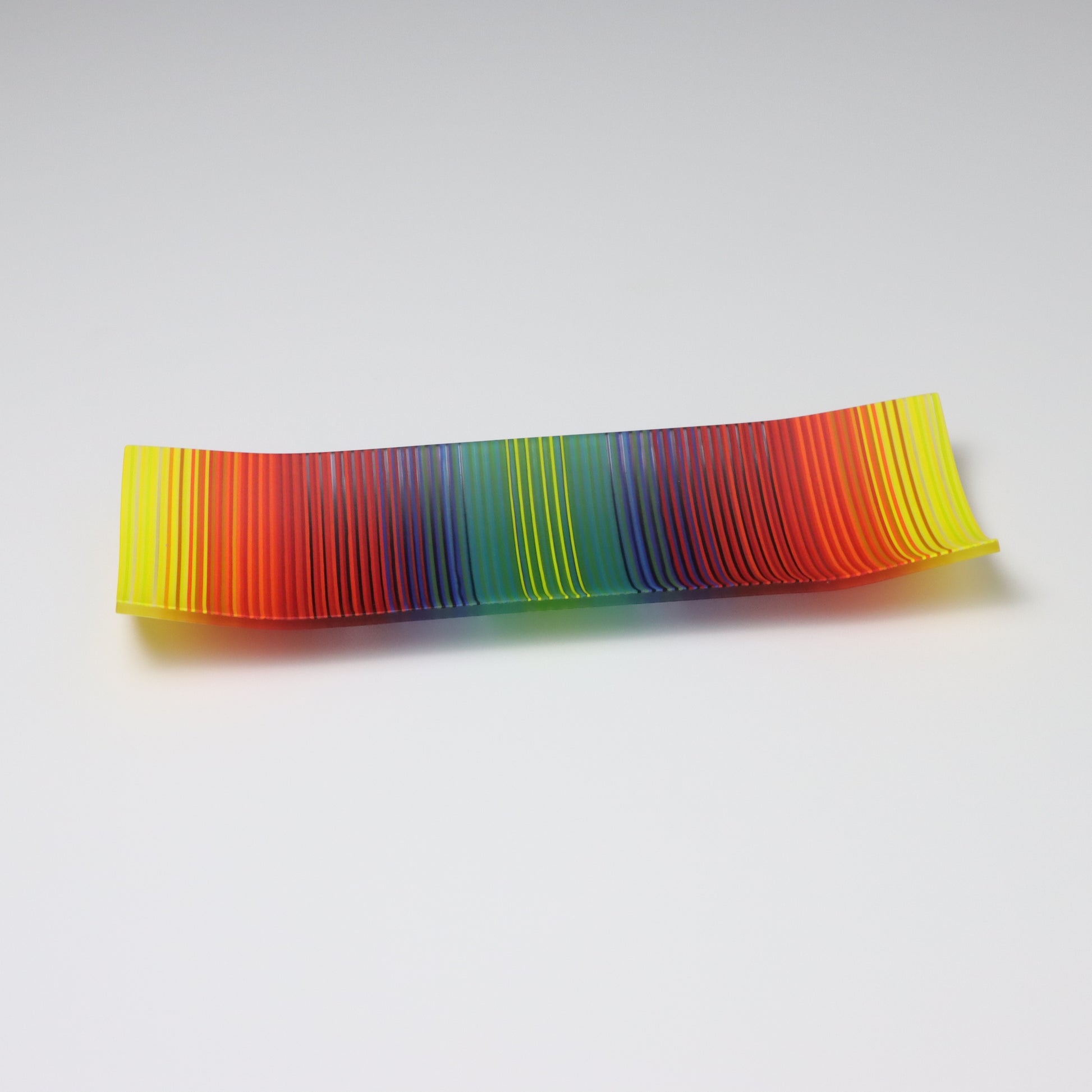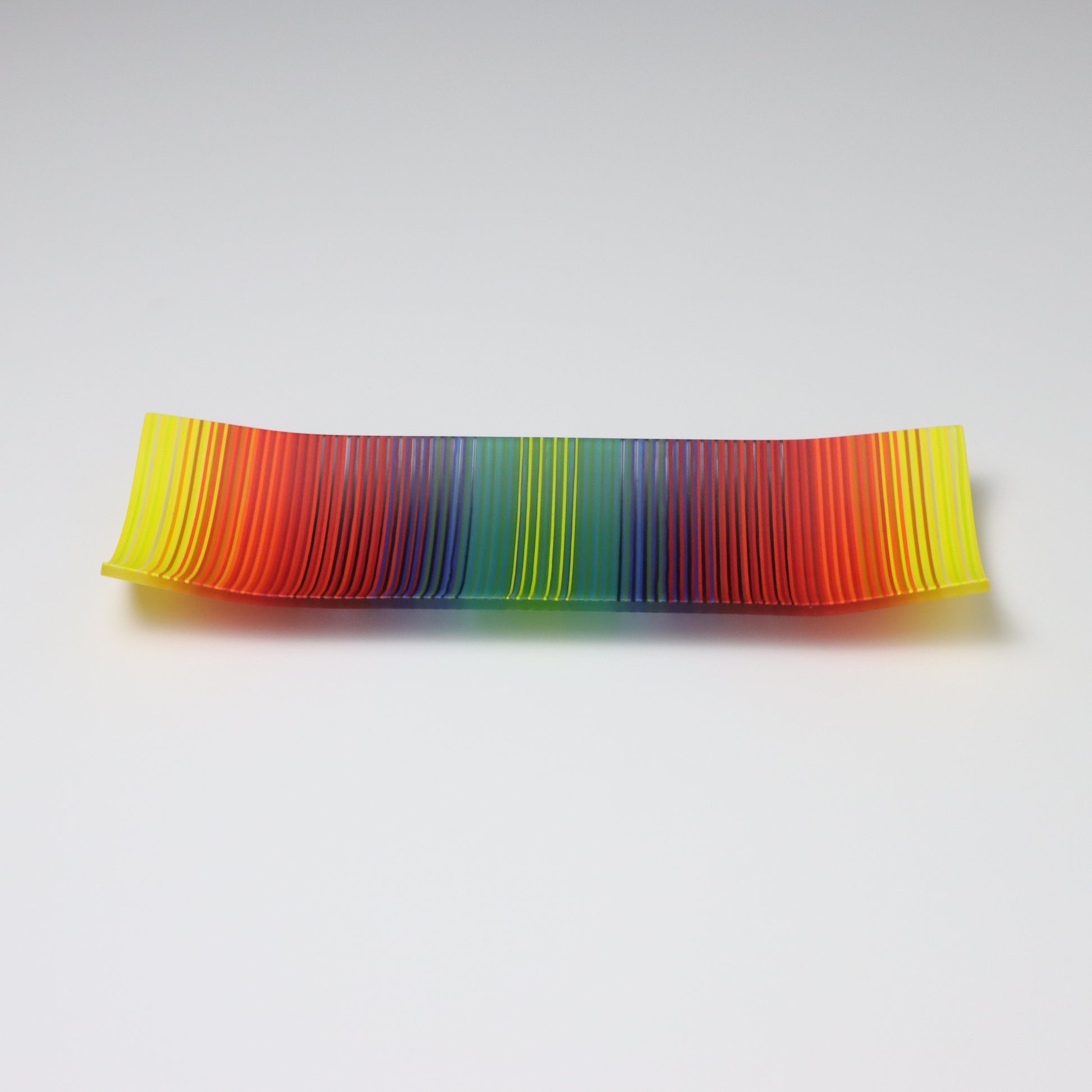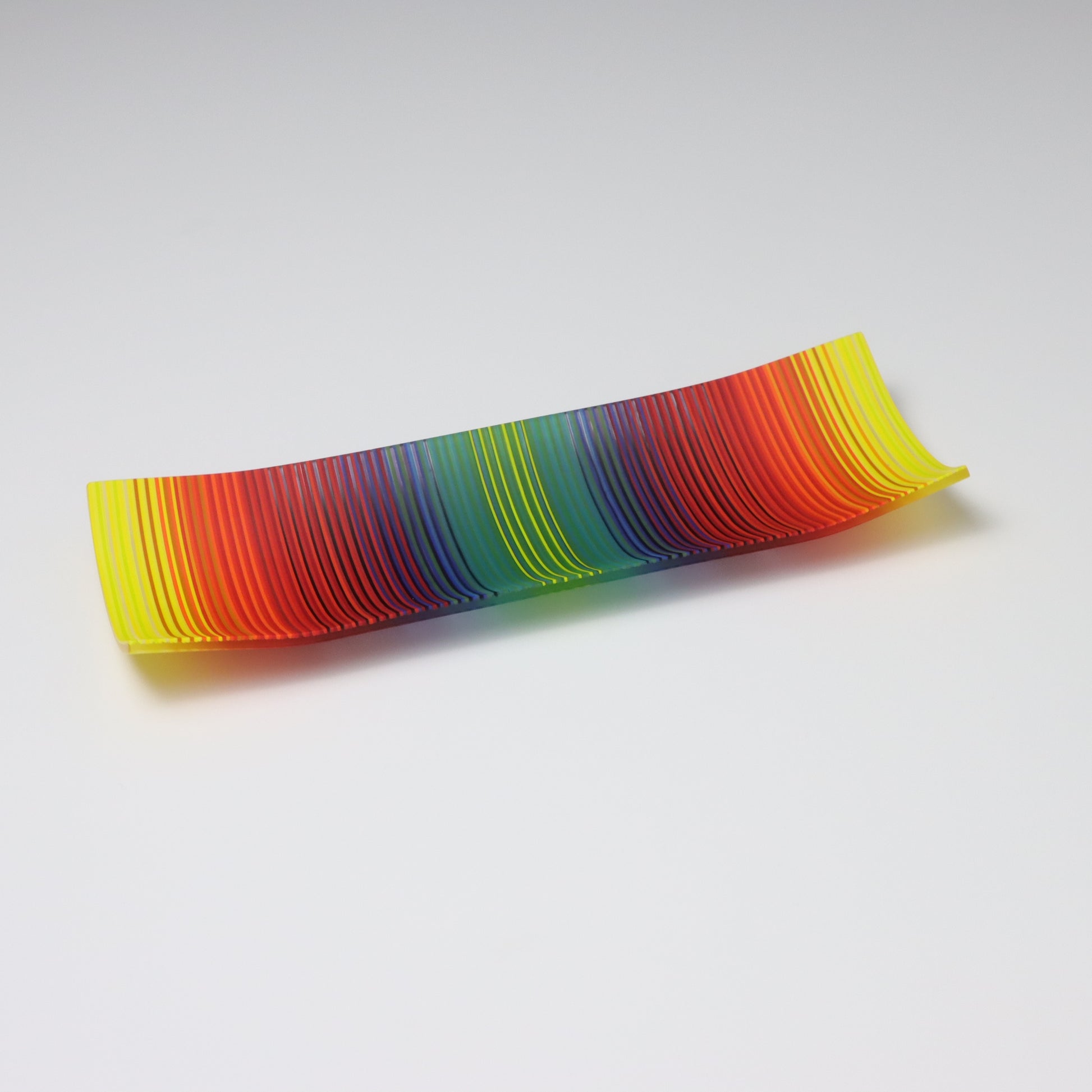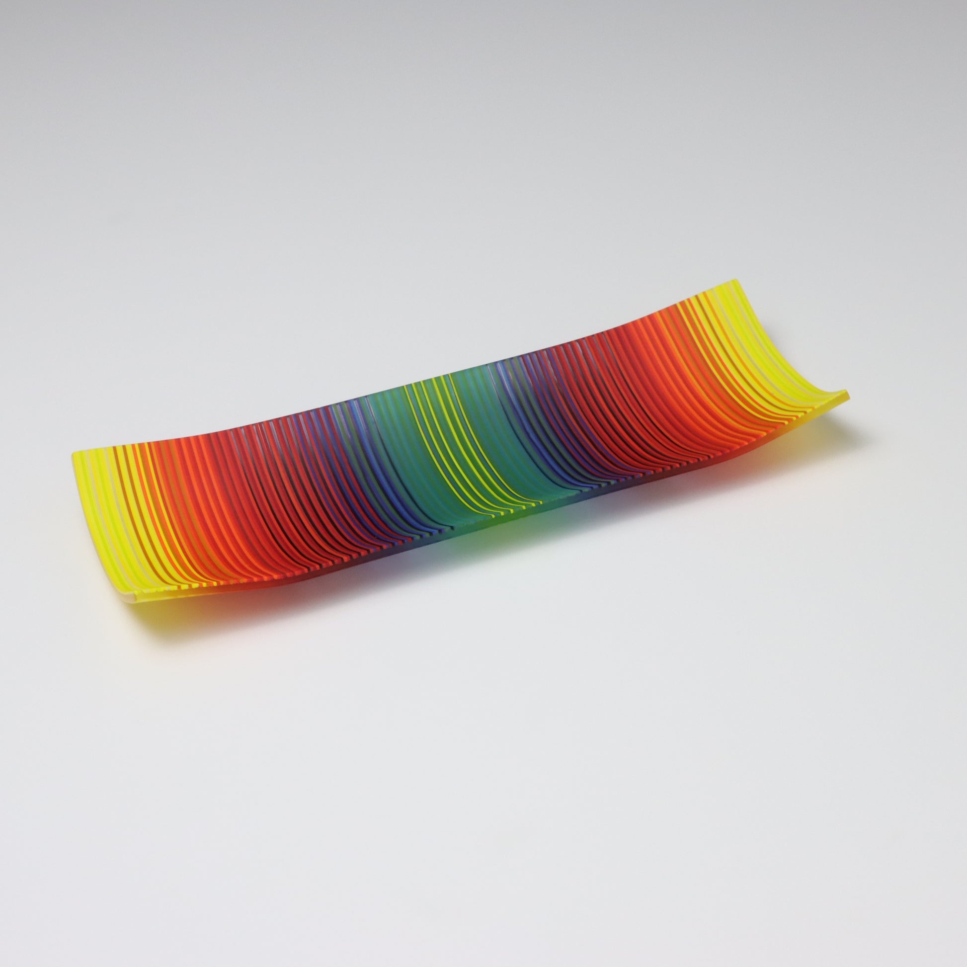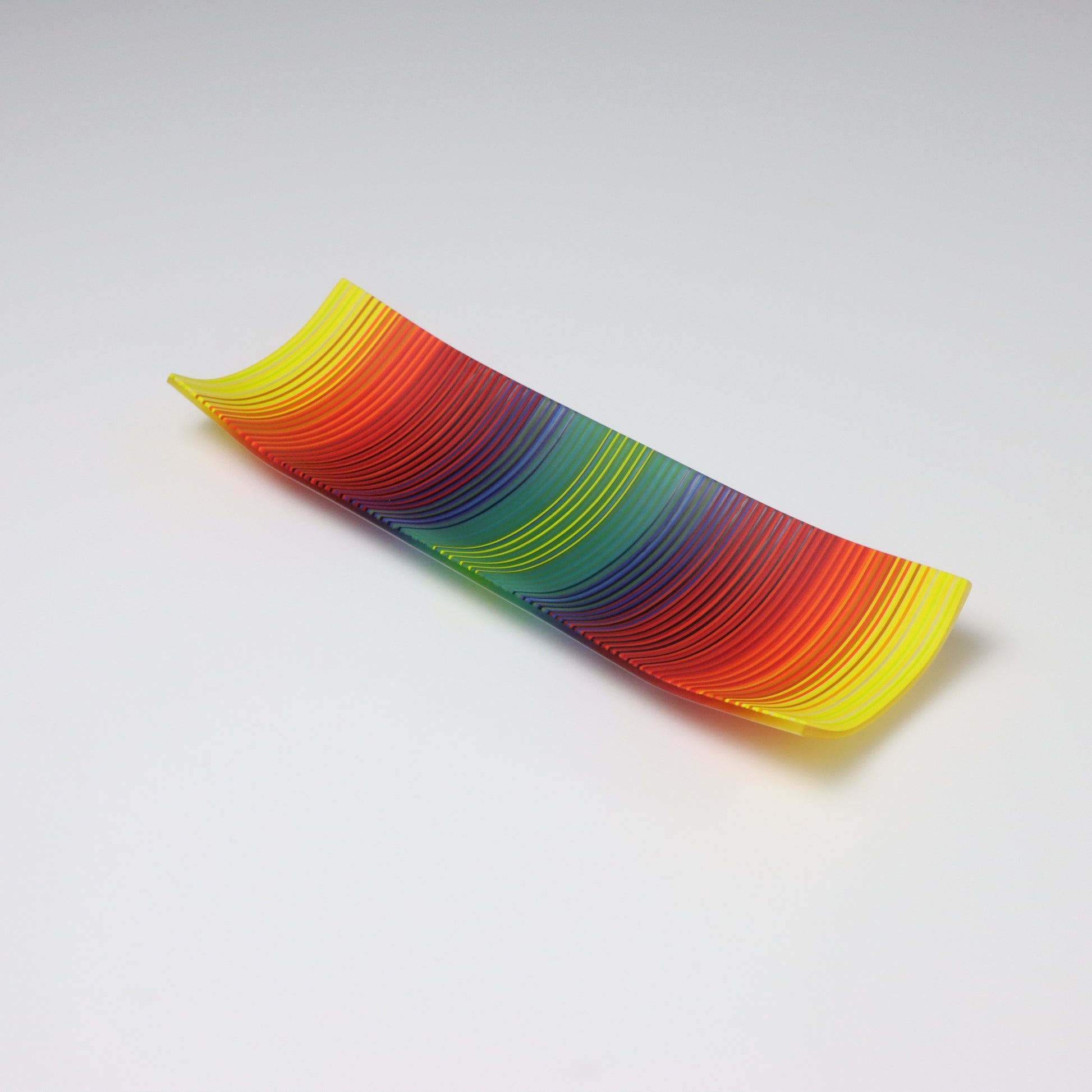 This creation captures the spirit of a vivid rainbow - waves of yellow, orange, red, purple, blue, and green flowing side by side. Look closely and you’ll see countless hidden hues within, each distinct yet moving together in perfect rhythm. The rectangular shape and gently curved edges bring a sense of balance - refined but alive.