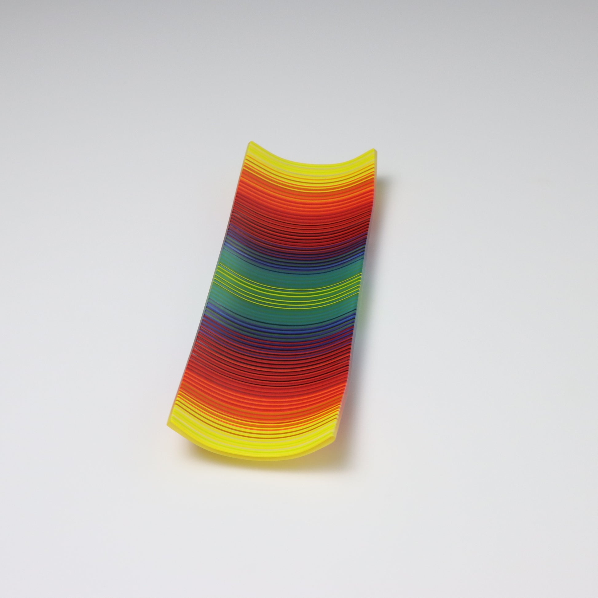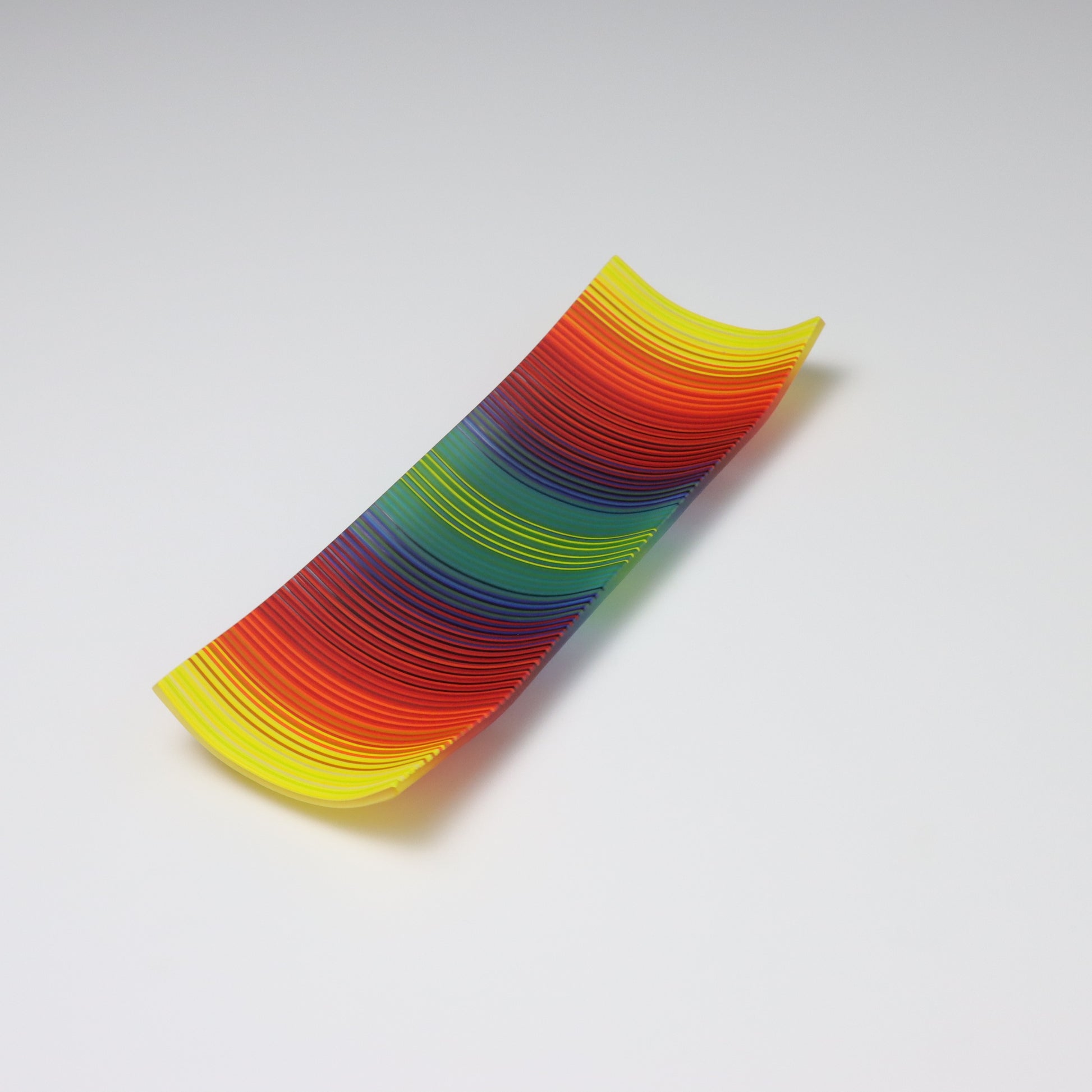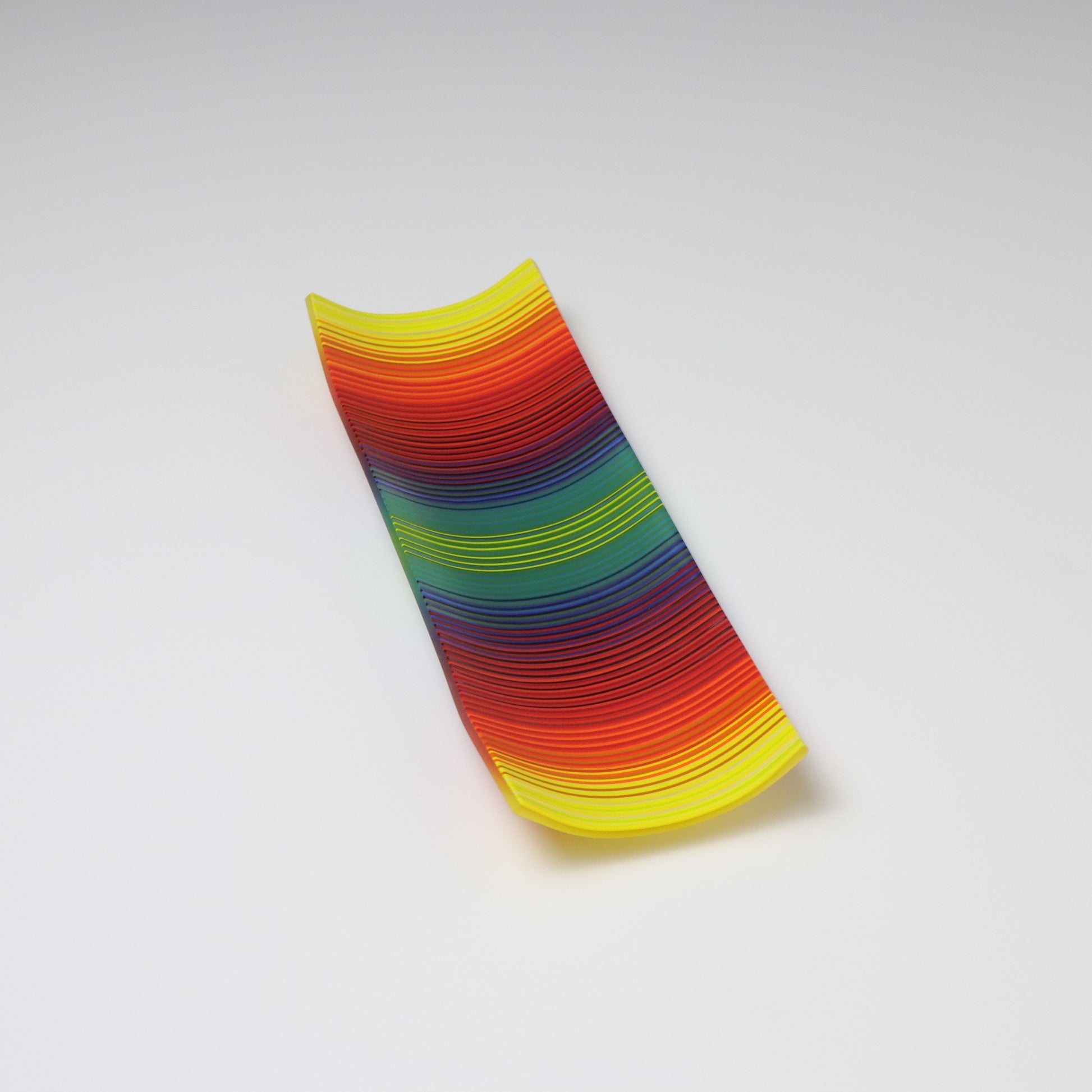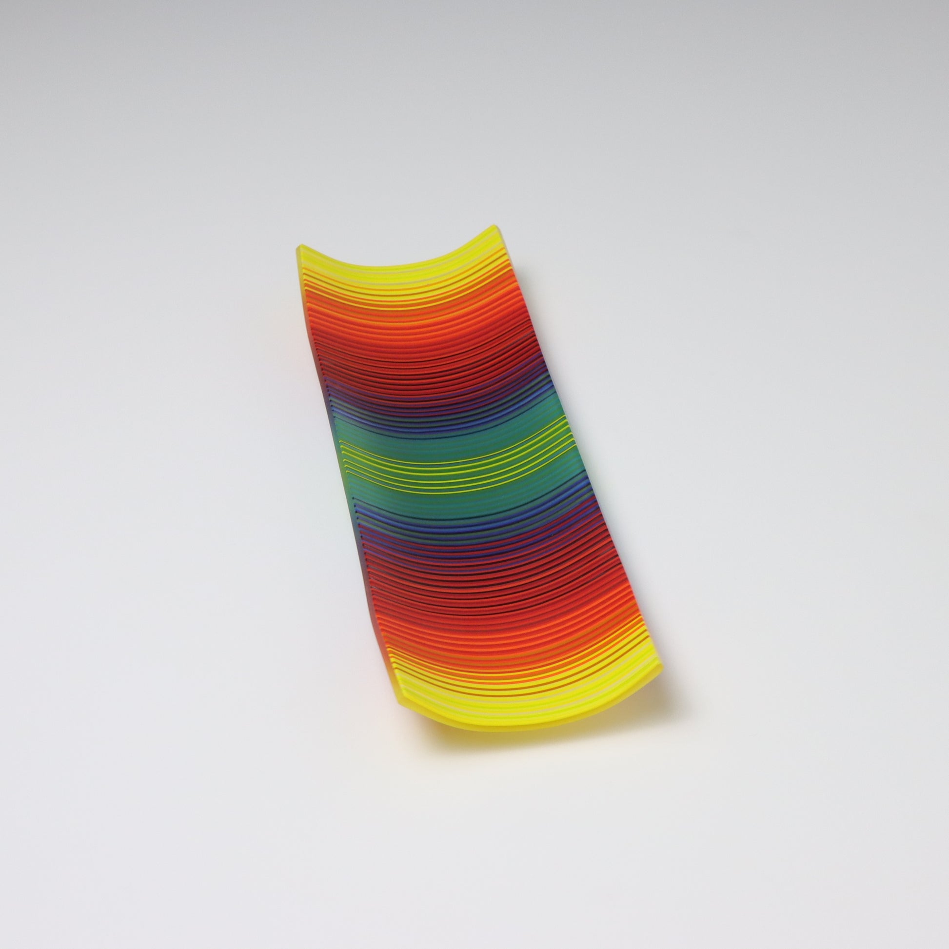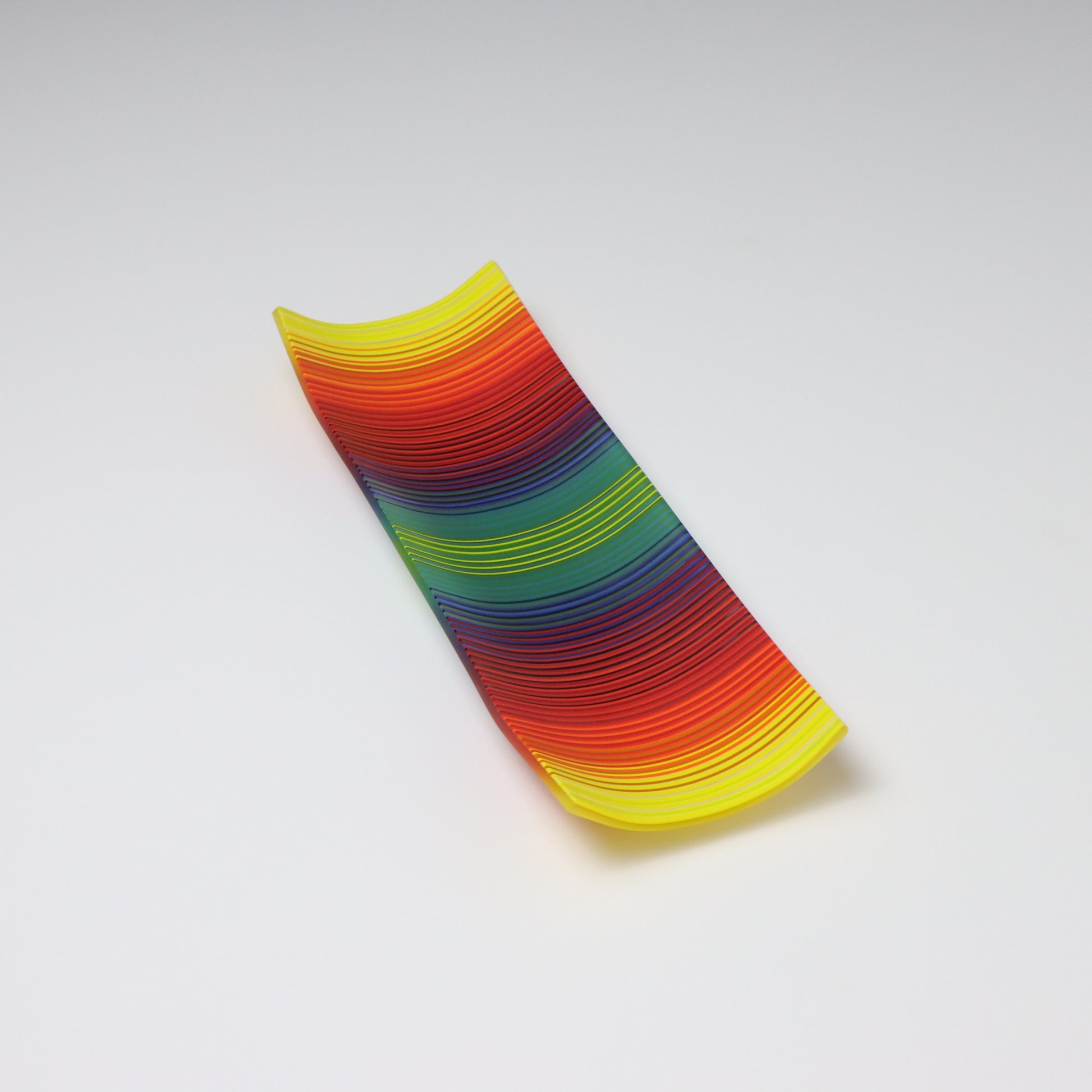This creation captures the spirit of a vivid rainbow - waves of yellow, orange, red, purple, blue, and green flowing side by side. Look closely and you’ll see countless hidden hues within, each distinct yet moving together in perfect rhythm. The rectangular shape and gently curved edges bring a sense of balance - refined but alive.